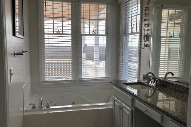 On the top level of the home awaits the luxurious primary suite. This expansive top‑floor retreat features a large king ensuite bedroom with a jetted tub, a peaceful spot to soak after a long day in the sun. For additional sleeping there are two twin beds near the king ensuite!