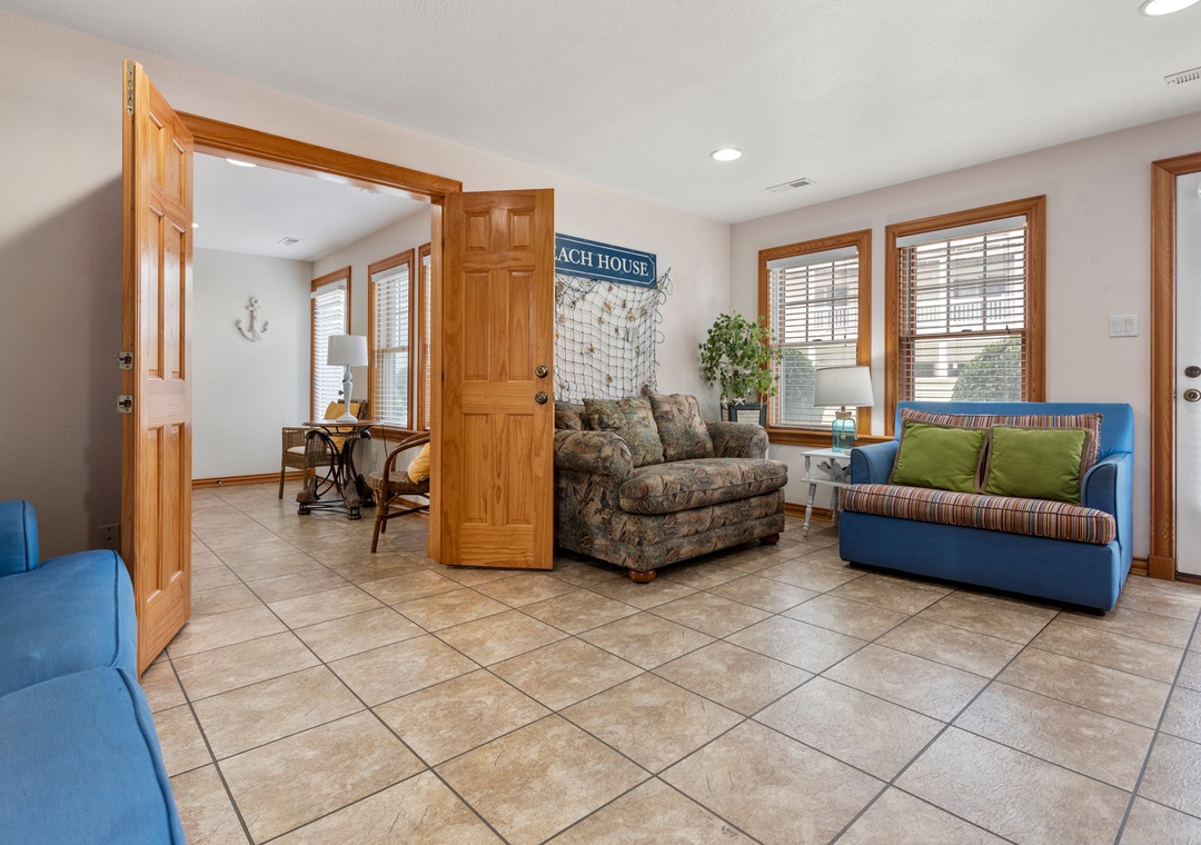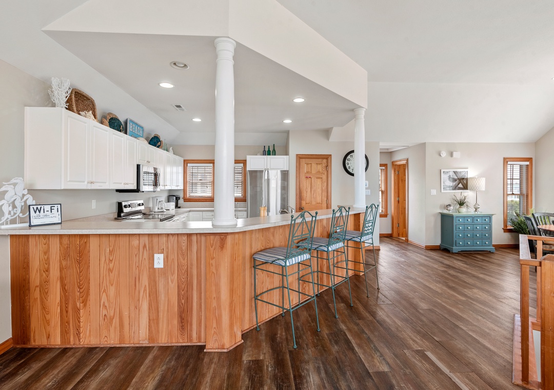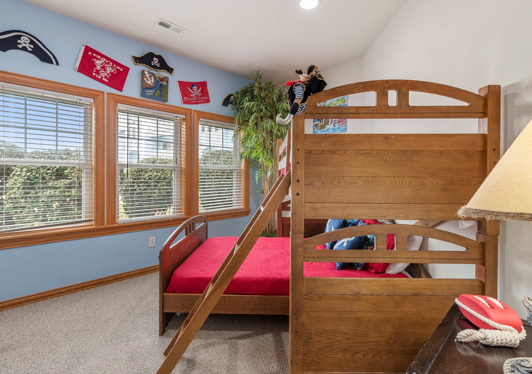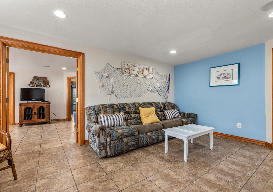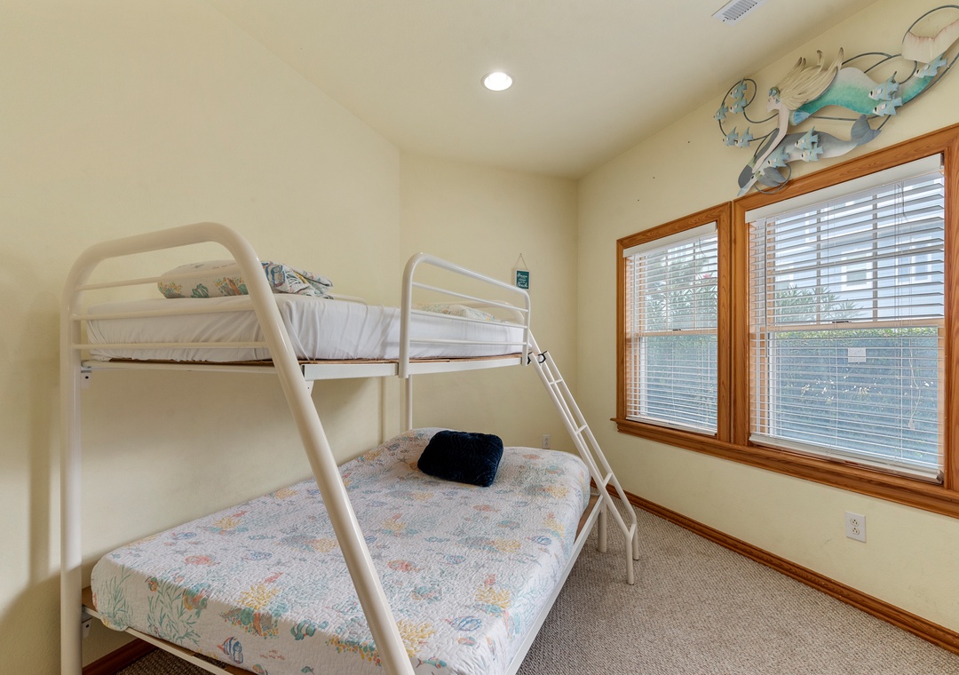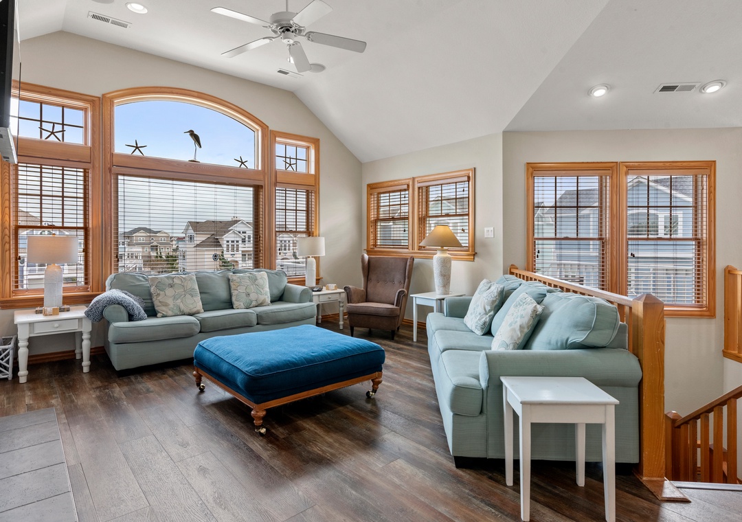 Planning a trip to the Outer Banks with another family? Make vacation memories together while still having your own separate retreats when you reserve White Dolphin. This Buck Island duplex features identical layouts on either side, each with its own living area, full kitchen, rec room and four bedrooms for a total of eight bedrooms under one roof! The top and bottom levels include interior access to the other side, making it easy to share spaces when you want to. Best of all, you'll only be a short walk to the beach (there's also free oceanfront parking) as well as a variety of resort-style amenities available exclusively to Buck Island guests.