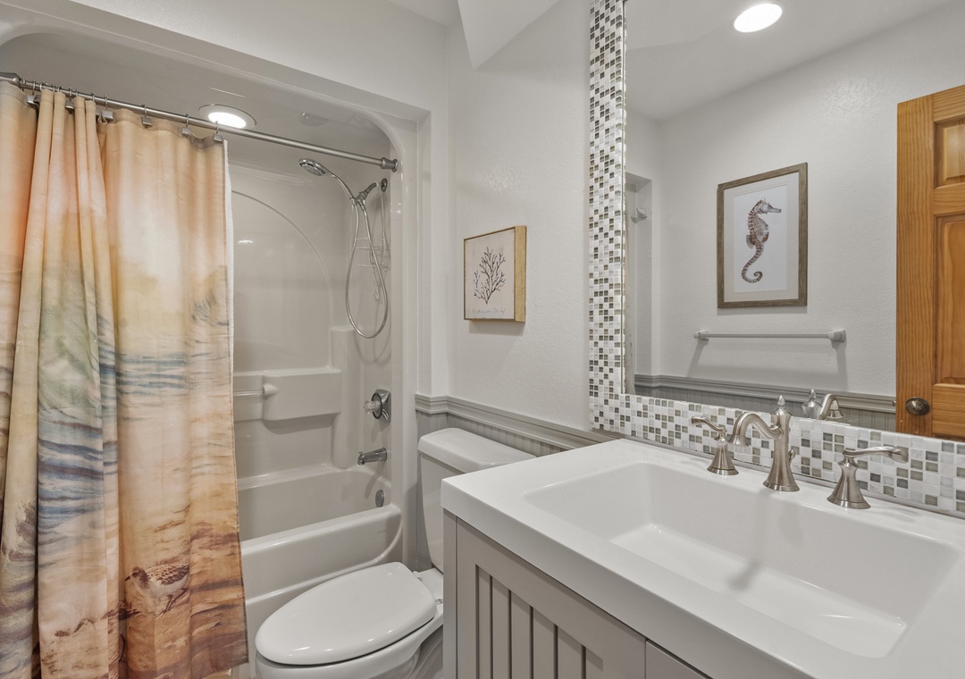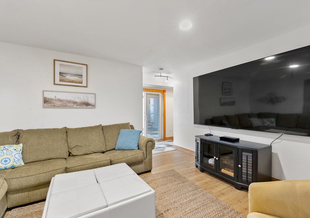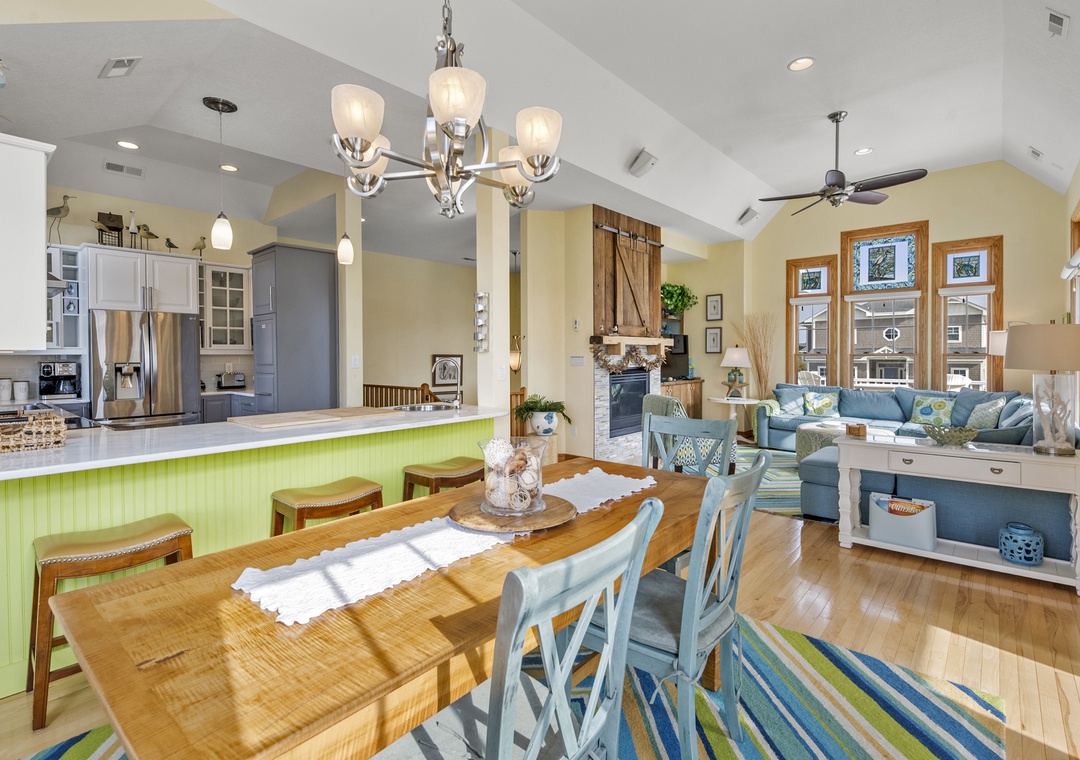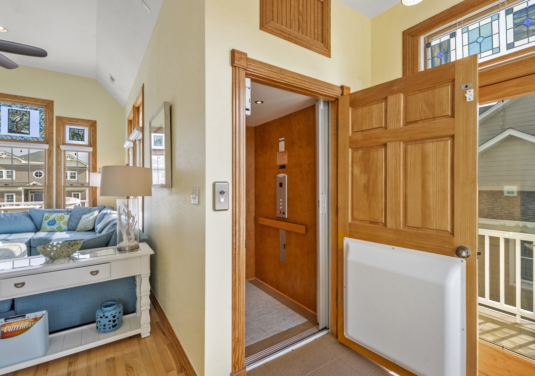 Spanning three spacious levels, this elegant home offers everything you need for the perfect getaway. On the ground level, you'll find a wet bar that opens to the backyard and a pool, which can be heated during colder months for a fee. A full bathroom and an expansive media room with a 105" Google TV add to the entertainment options, while the garage provides convenient parking and storage. Accessibility is effortless with an elevator to all floors, making Ocean Jewel friendly for everyone. The mid-level provides two spacious queen bedrooms with ensuite bathrooms, a cozy sitting area with a pull-out sofa, and an additional full bath near a bedroom with a pyramid bunk bed, perfect for kids! The top floor features a large family room, dining area, bar, and a fully stocked kitchen, making it ideal for gathering and entertaining. A master king ensuite with a generous bathroom, walk-in shower, and walk-in closet ensures comfort for guests of all ages.