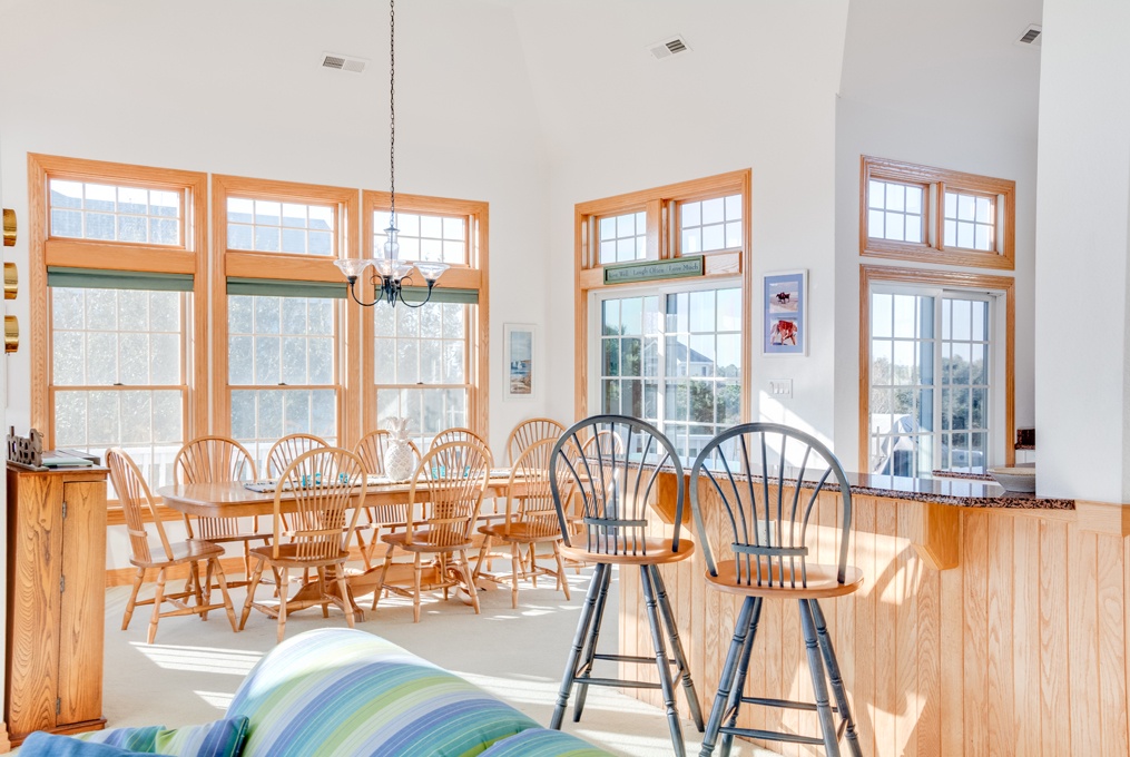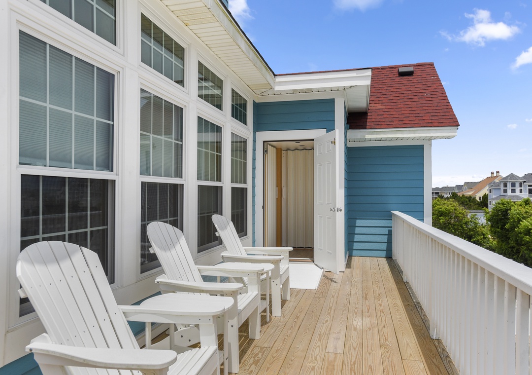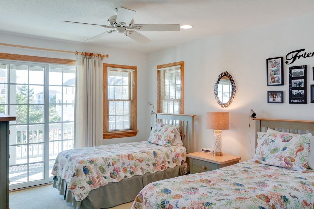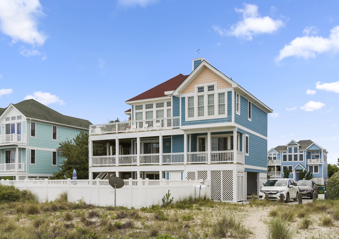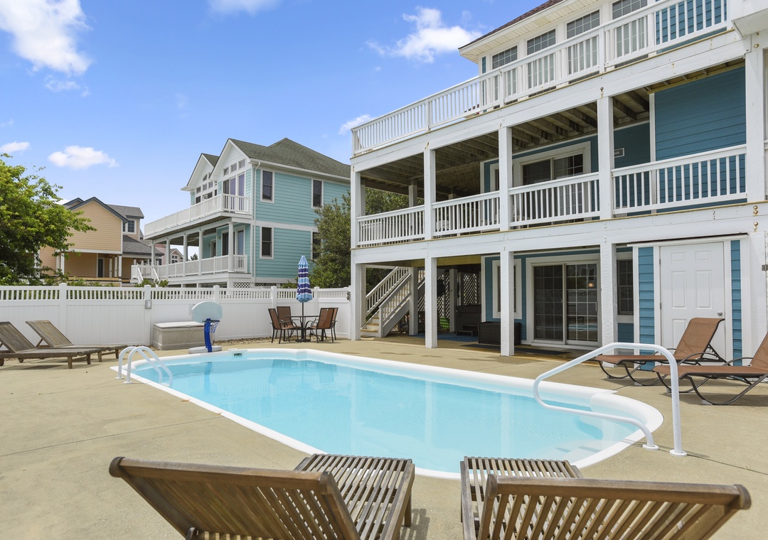 Located on the oceanside in Buck Island, Corolla our 5 bedroom home is only a hop, skip and jump away to the beach! Swim in the blue waters of the Atlantic Ocean, just 100 yards away, take a dip in your private pool or relax under the stars in our hot tub. We offer 4 master suites including one with a jetted tub, TVs, DVD players and WIFI and and elevator with access to all levels.