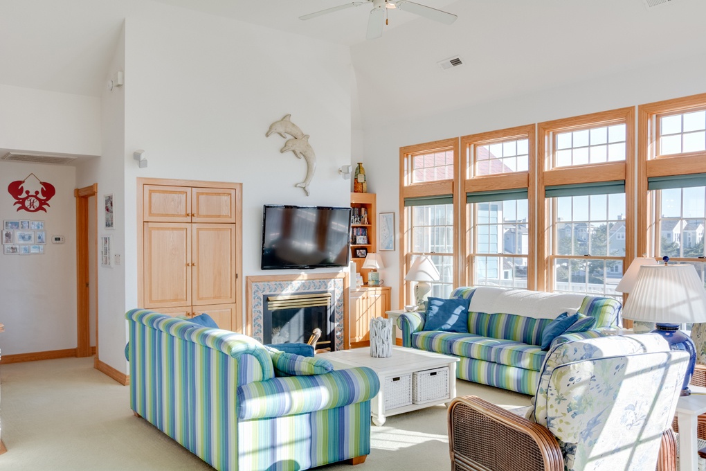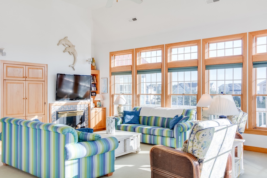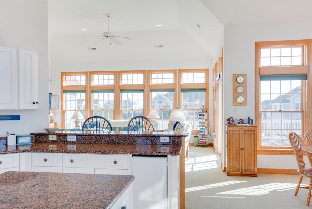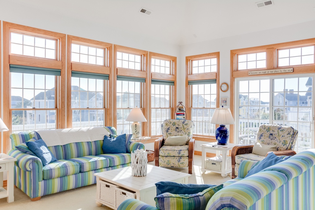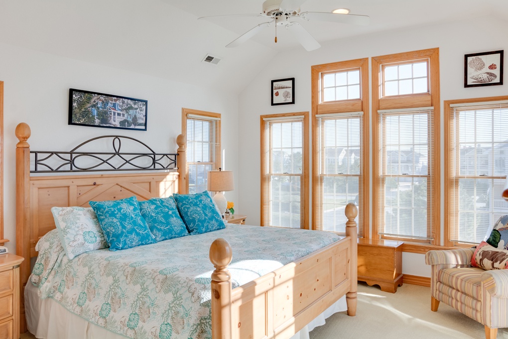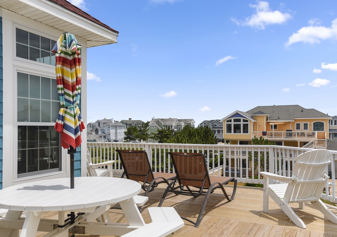 Located on the oceanside in Buck Island, Corolla our 5 bedroom home is only a hop, skip and jump away to the beach! Swim in the blue waters of the Atlantic Ocean, just 100 yards away, take a dip in your private pool or relax under the stars in our hot tub. We offer 4 master suites including one with a jetted tub, TVs, DVD players and WIFI and and elevator with access to all levels.