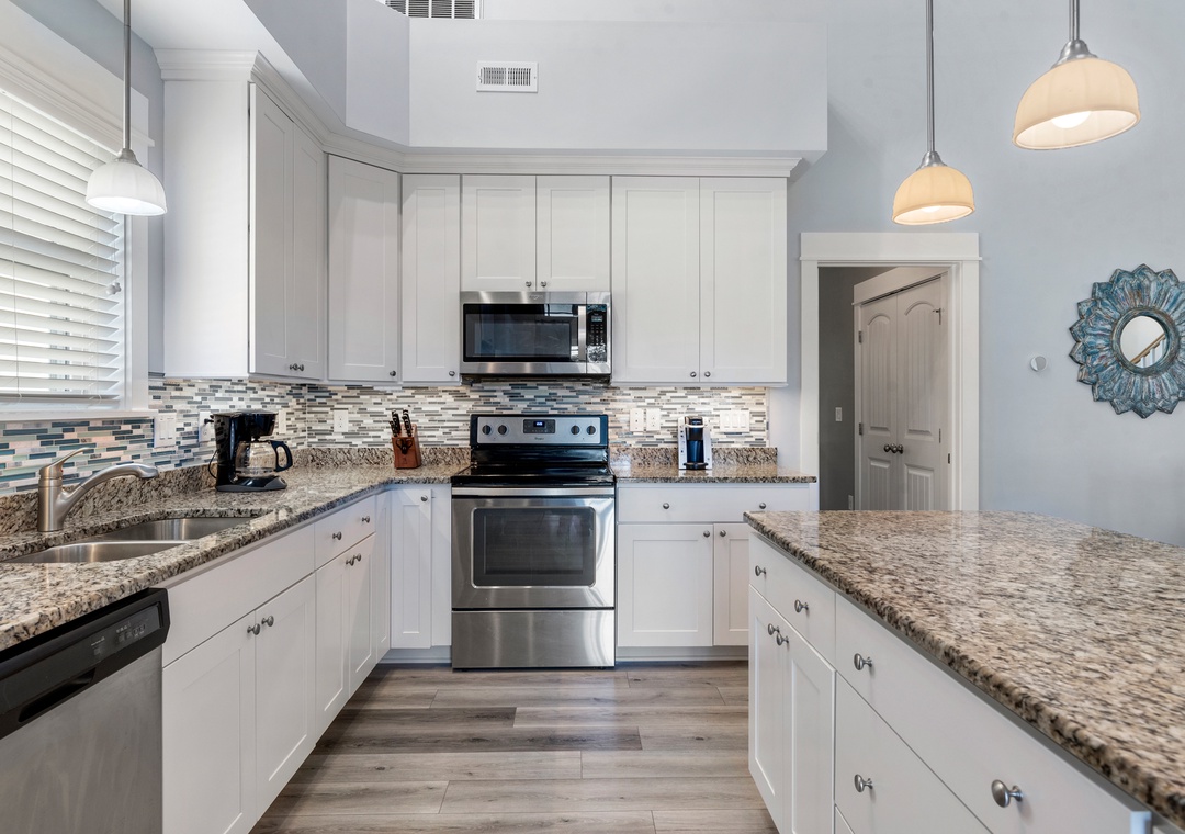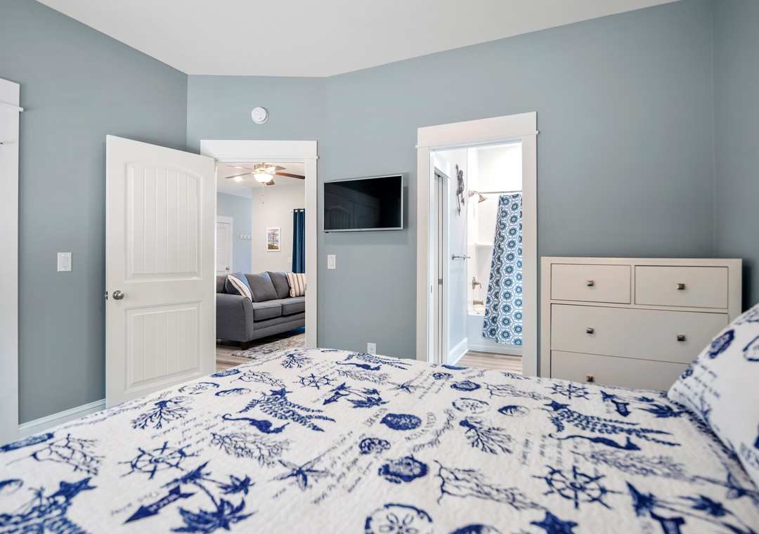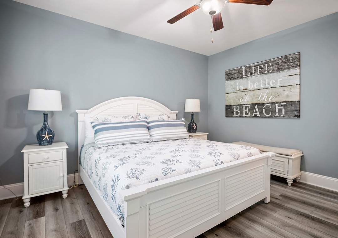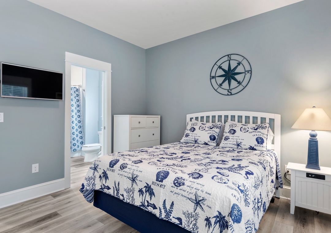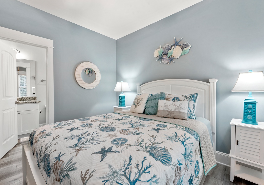 Sunset Villa boasts bright and inviting custom paint and brand new LVP throughout the entire unit. Completely refurnished, including all new beds and bedding, every room has been meticulously decorated in a coastal theme, setting the stage for your perfect and comfortable stay. With four bedrooms, each with its own ensuite and smart Roku TV, as well as an additional half bath on the main floor gathering area, every member of the family is sure to find their perfect spot.
