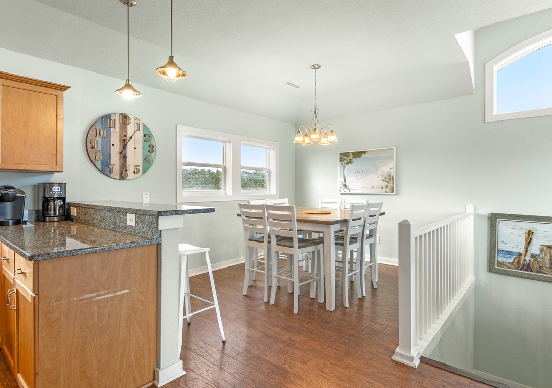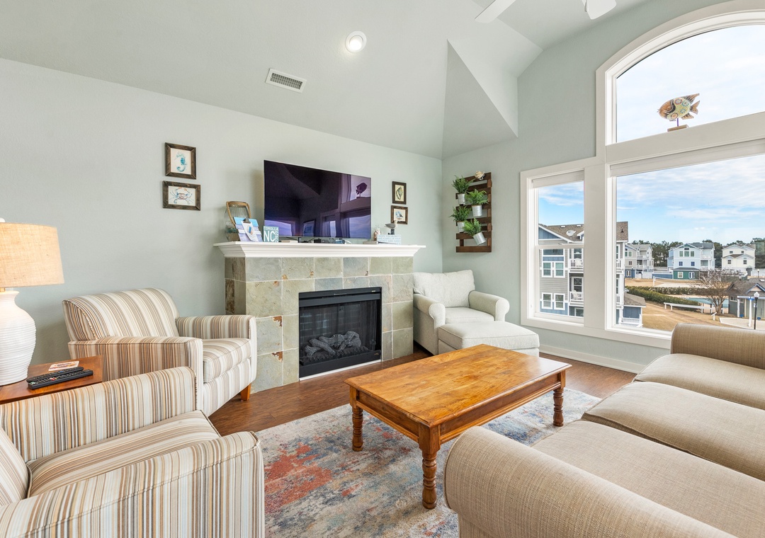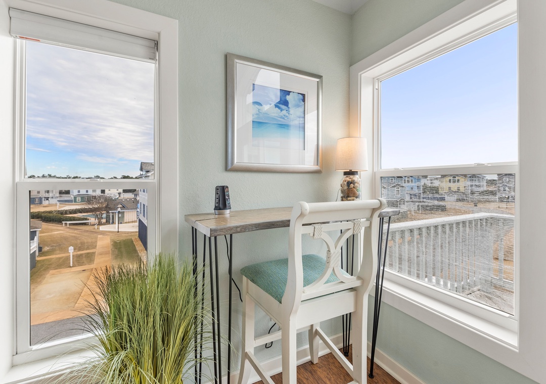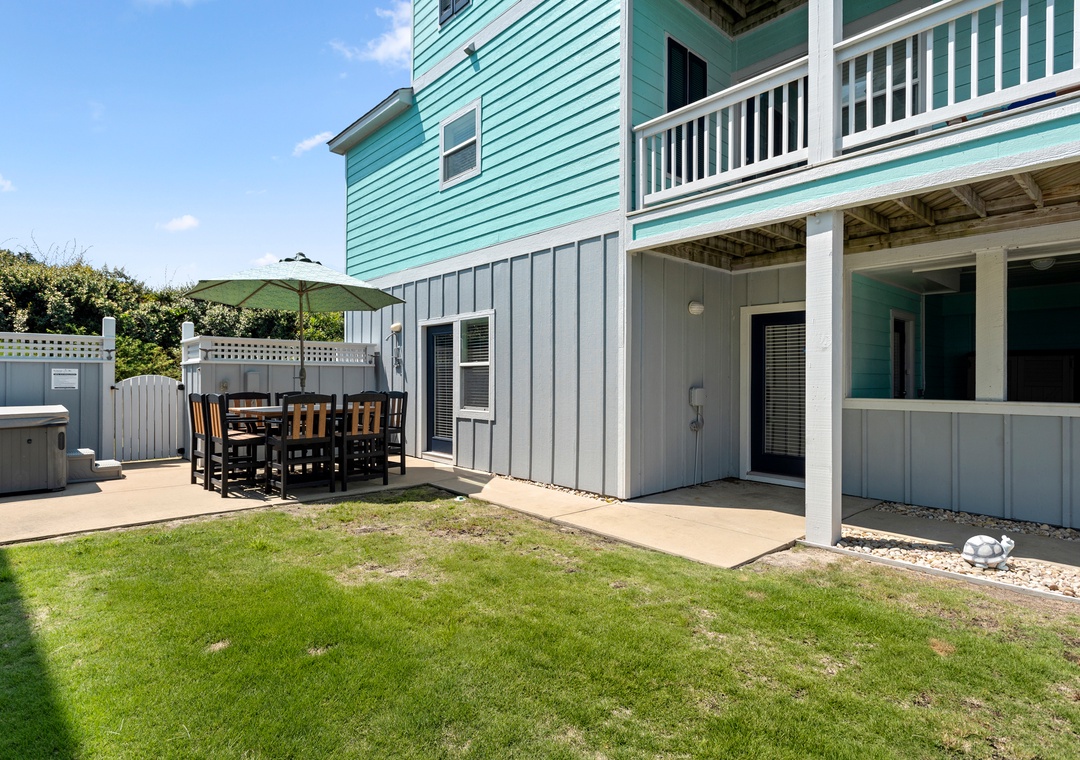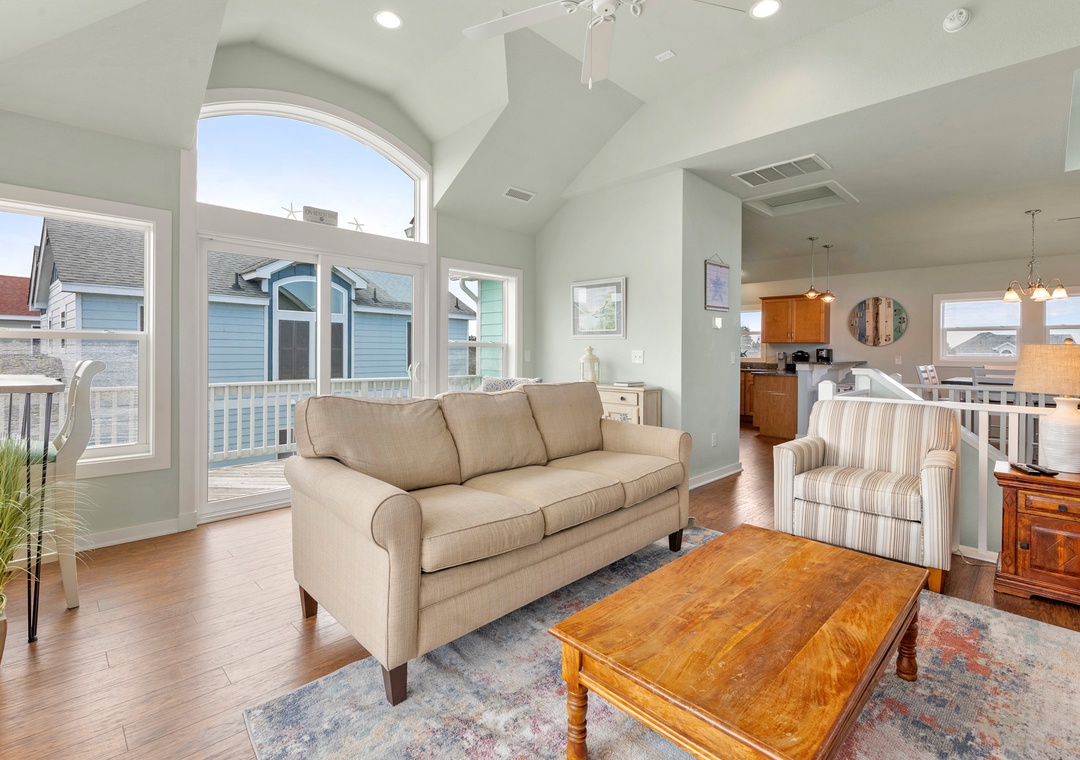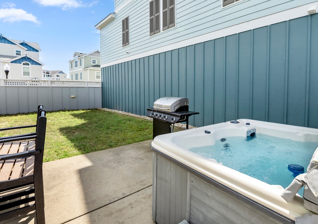 You will be Inn No Hurry when you arrive in the OBX for a serene vacation and to take in some sunshine and salty air! This beautiful home will provide plenty of space to spread out with three spacious floors. The top-level will be the hub for entertaining, with the living, dining, and kitchen areas, and balcony access! The chef of the group will love the fully equipped kitchen and bar seating for reminiscing as a delicious meal is prepared. End your busy and adventurous day star gazing and relaxing in the hot tub. The community pool is right across the street and is only a small part of the community activities!