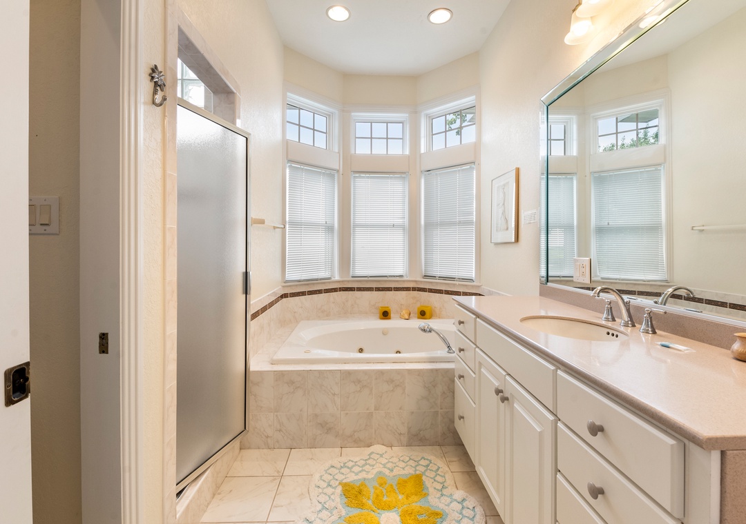 The house was in a beautiful location, very serene and beautiful views just as described. Only 2 of the bedrooms upstairs had to share a bathroom which was great. There was lots of space for the whole group to feel comfortable. The only downside to the inside of the house was having to use one of the bathrooms in the bedrooms downstairs for the common area, but that was manageable. Location was great and we used the pools a few times.