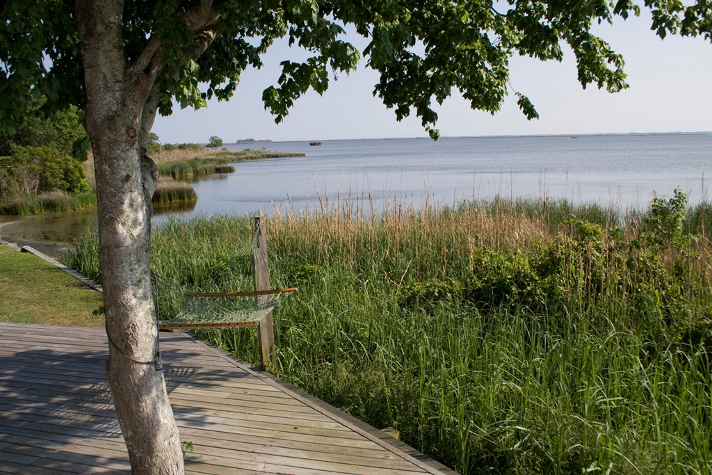 Glorious sunsets over the Currituck Sound coupled with gentle breezes make our hammock at water's edge the perfect place to relax or watch the ducks, swans and other wildlife. This charming Outer Banks soundfront home offers casual living at it's best with lovely heart pine floors, a large well-equipped kitchen, and a 1st floor master suite with his and her bathrooms. Enjoy a true getaway at Live Oak Landing in your own mini-resort and spa.