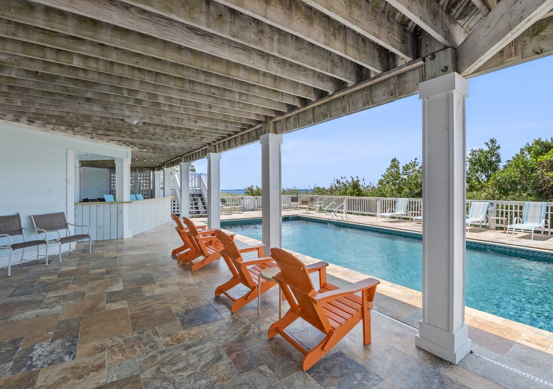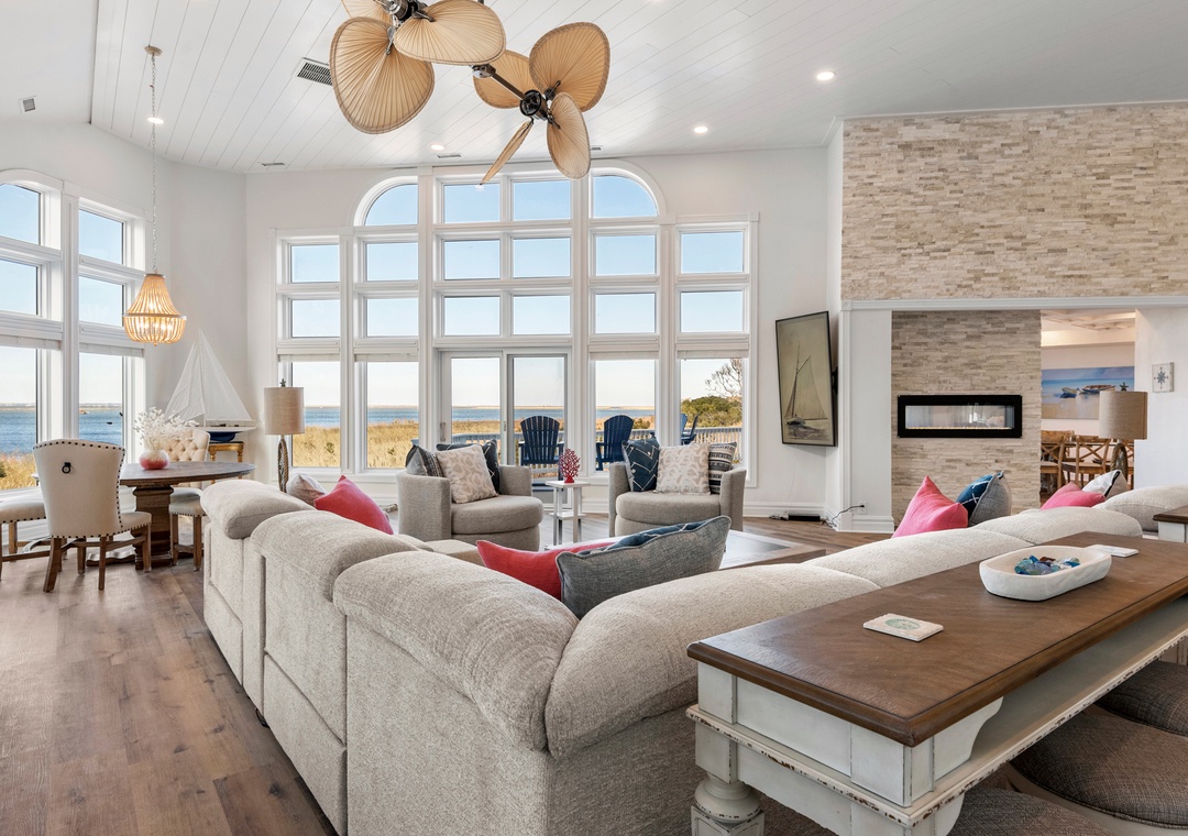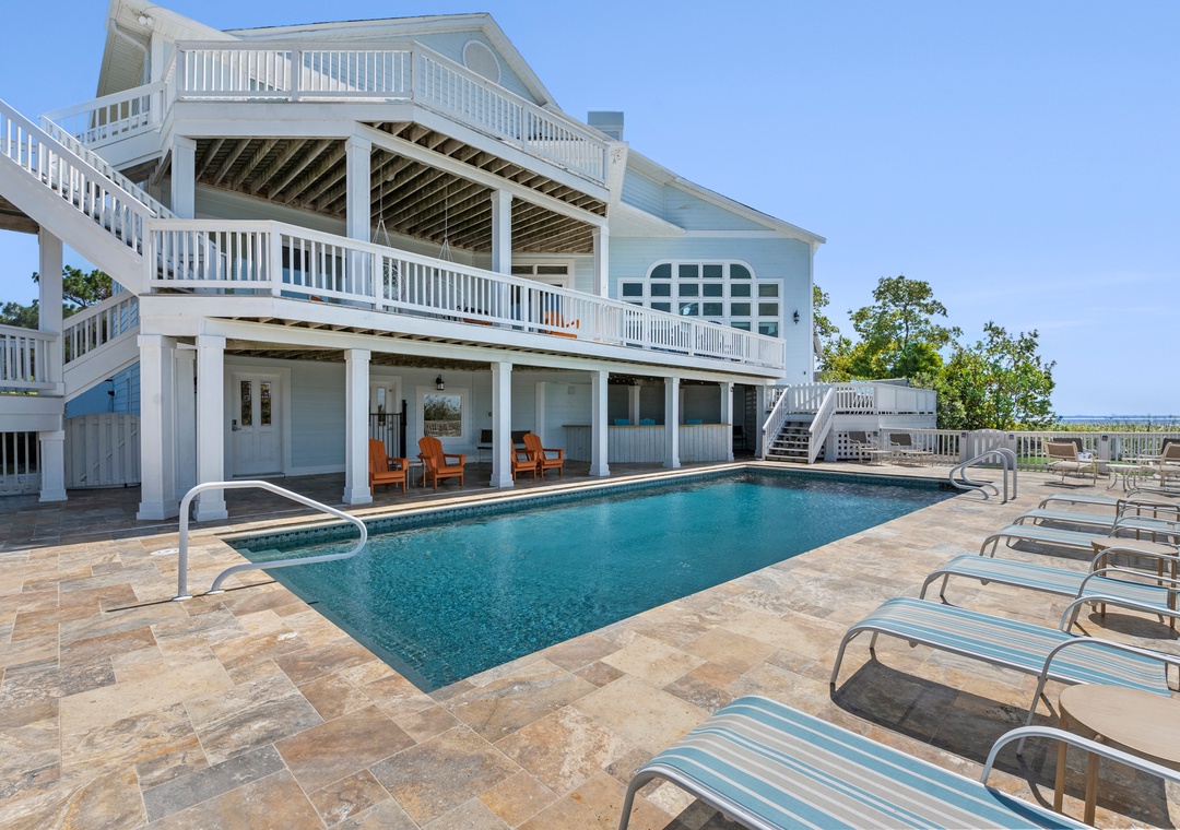 You and your guests will marvel at the breathtaking and unobstructed soundfront sunsets from the spacious living room, multi level decks, pool area, and hot tub. There's also a covered outdoor bar equipped with a refrigerator as well as a full cabana bath by the pool area for guests' convenience.