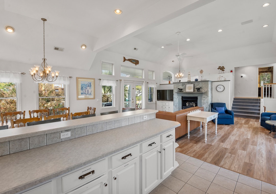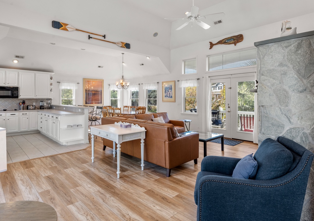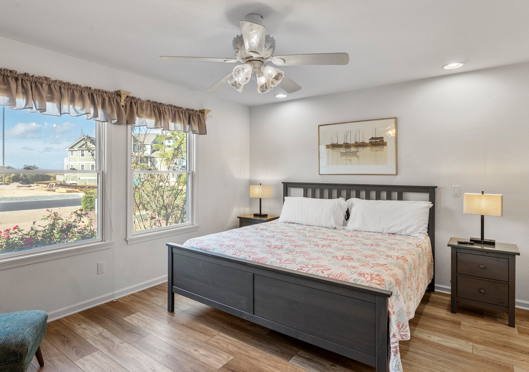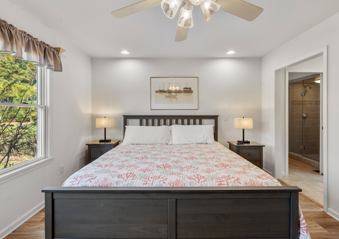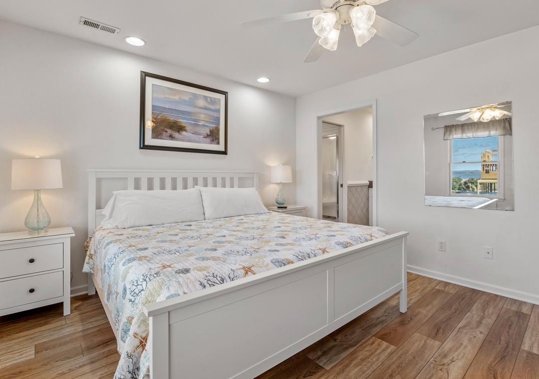 Heron Comes the Sun provides over 3,000 square feet of indoor living space and six bedrooms to easily accommodate multiple or extended families. The split-level layout consists of three bedrooms upstairs (including two king ensuites) and three additional bedrooms (including the third king ensuite) on the lower floor. Downstairs, you'll also find a cozy den that can be used for some quiet time or a movie night. Use the full-sized fridge in the laundry room for storing extra groceries or the catch of the day.