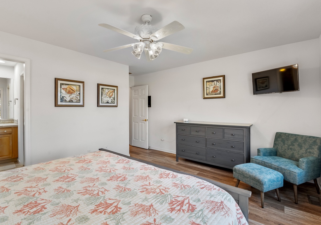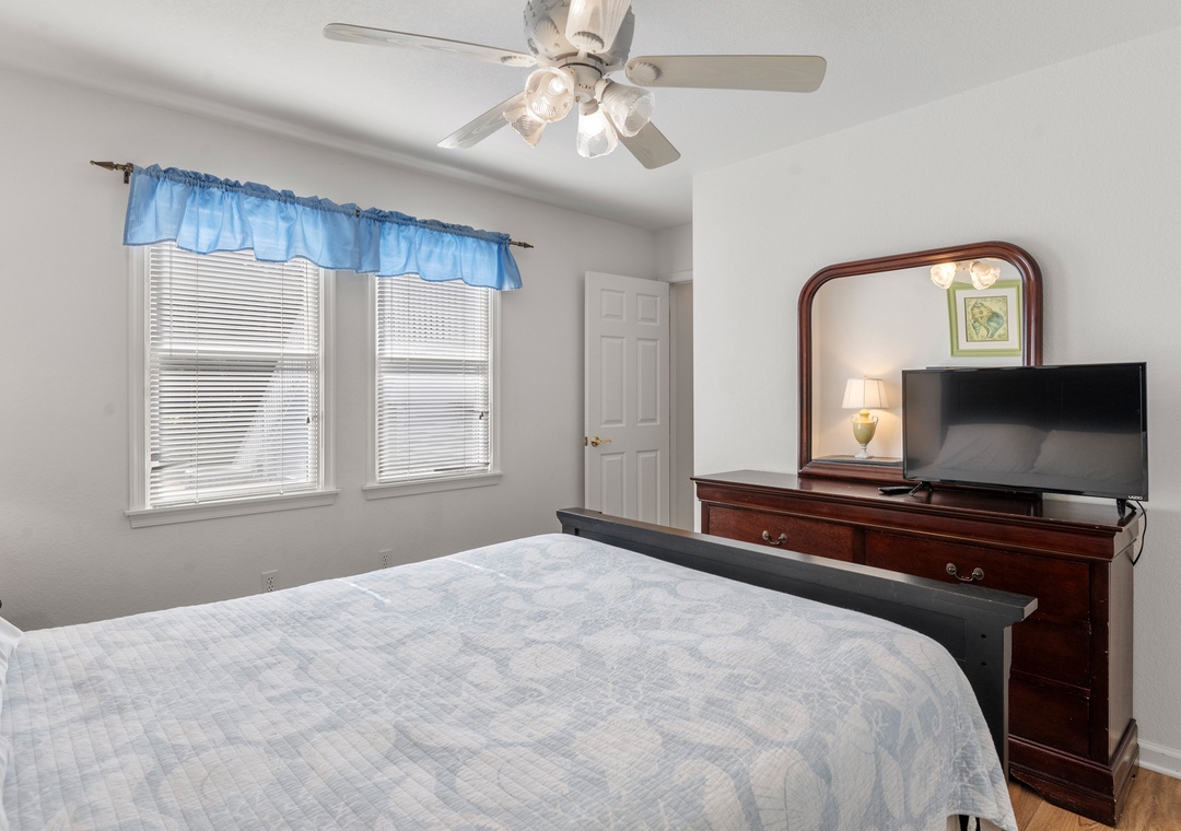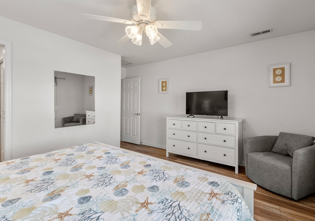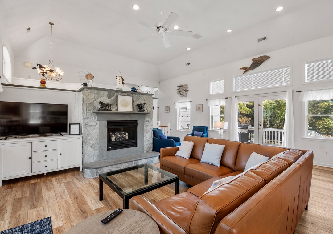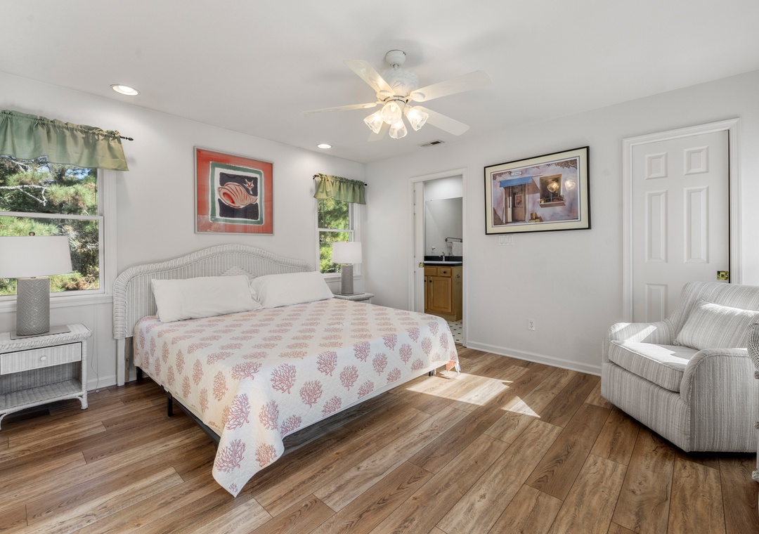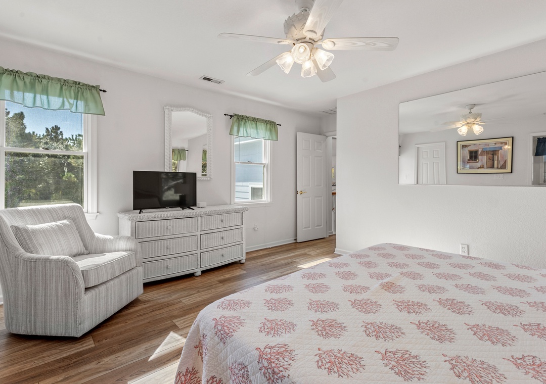 Heron Comes the Sun provides over 3,000 square feet of indoor living space and six bedrooms to easily accommodate multiple or extended families. The split-level layout consists of three bedrooms upstairs (including two king ensuites) and three additional bedrooms (including the third king ensuite) on the lower floor. Downstairs, you'll also find a cozy den that can be used for some quiet time or a movie night. Use the full-sized fridge in the laundry room for storing extra groceries or the catch of the day.