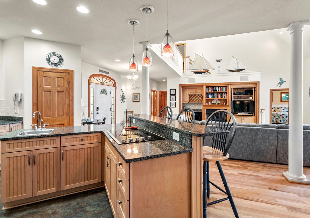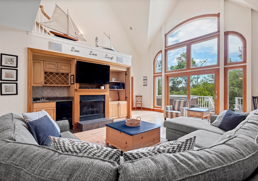 -Good Vibrations is surrounded by mature trees and offers maximum privacy and seclusion, while ensuring all enjoy the beautiful surroundings by providing ample beach toys, chairs, and bicycles for your whole group in the separate garage.