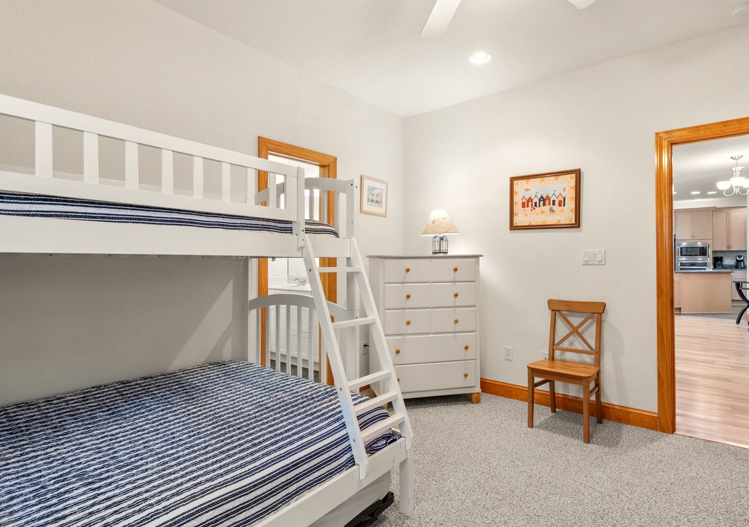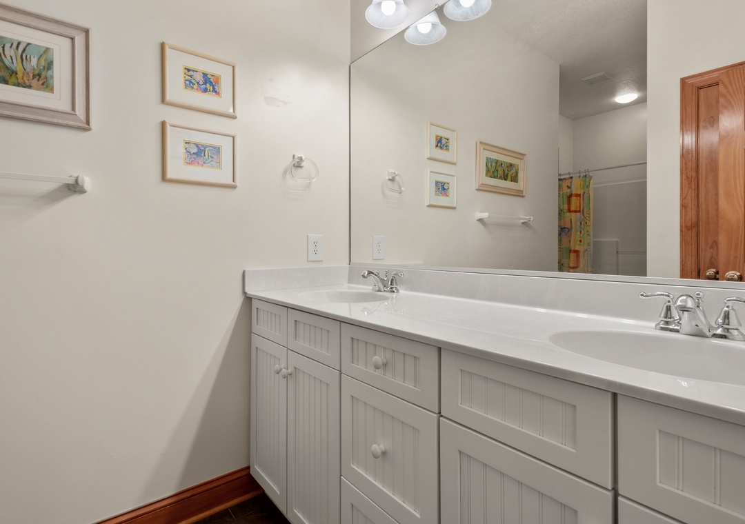 Upstairs, the den serves as a second living area complete with wet bar for first-thing coffee and late-night snacks. This convenient bonus space is adjoined by two master suites that each have access to a private balcony and en suite bath with double vanity. It also has a queen foldout sofa if needed.