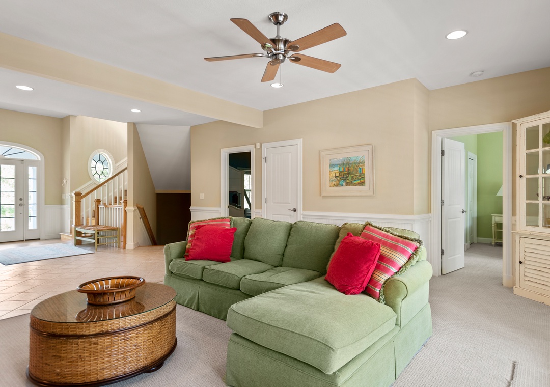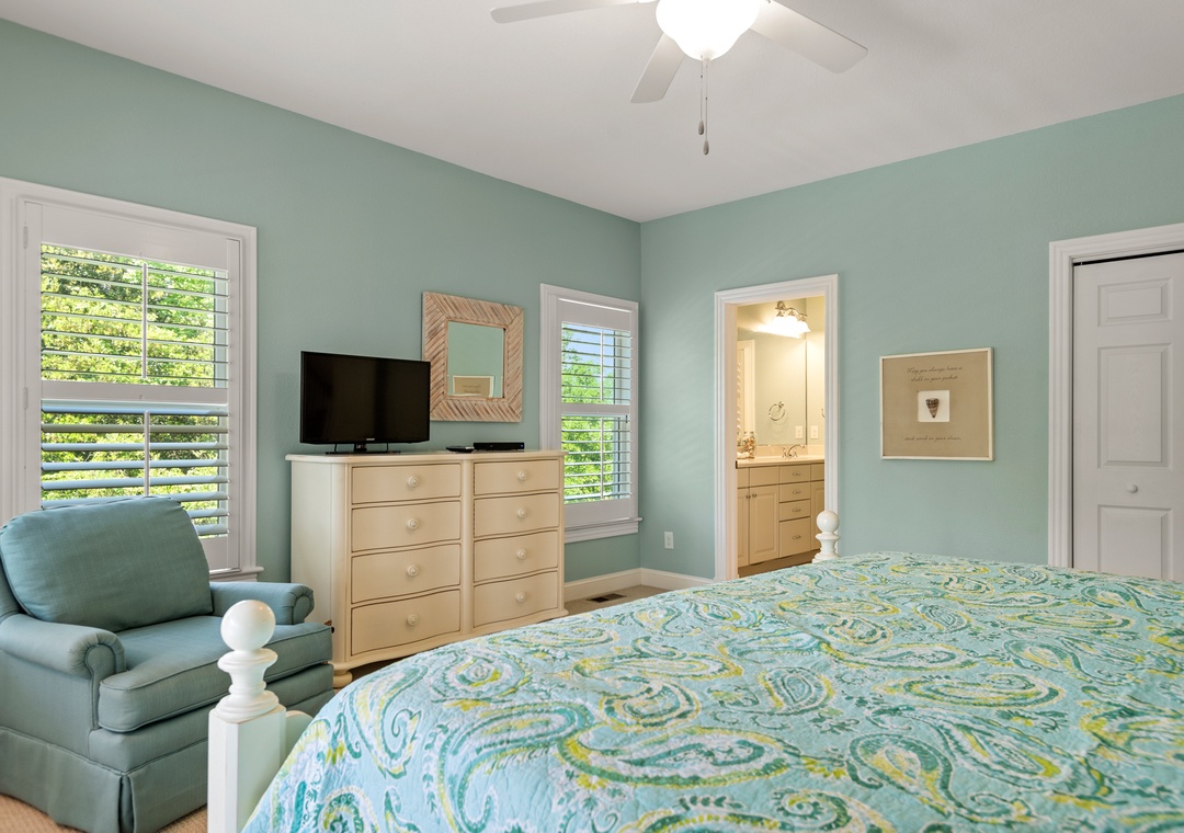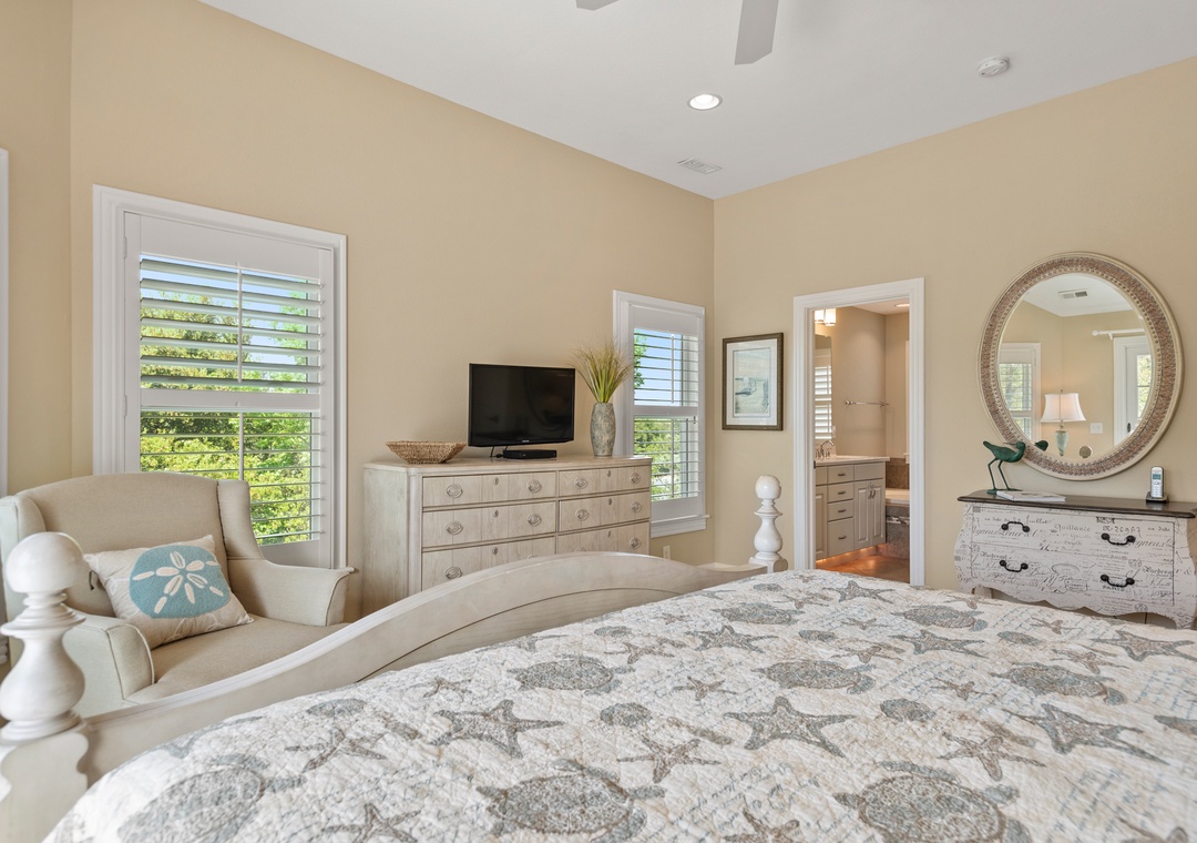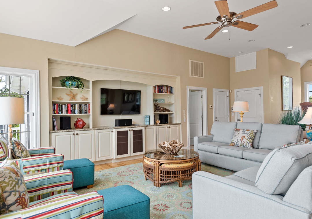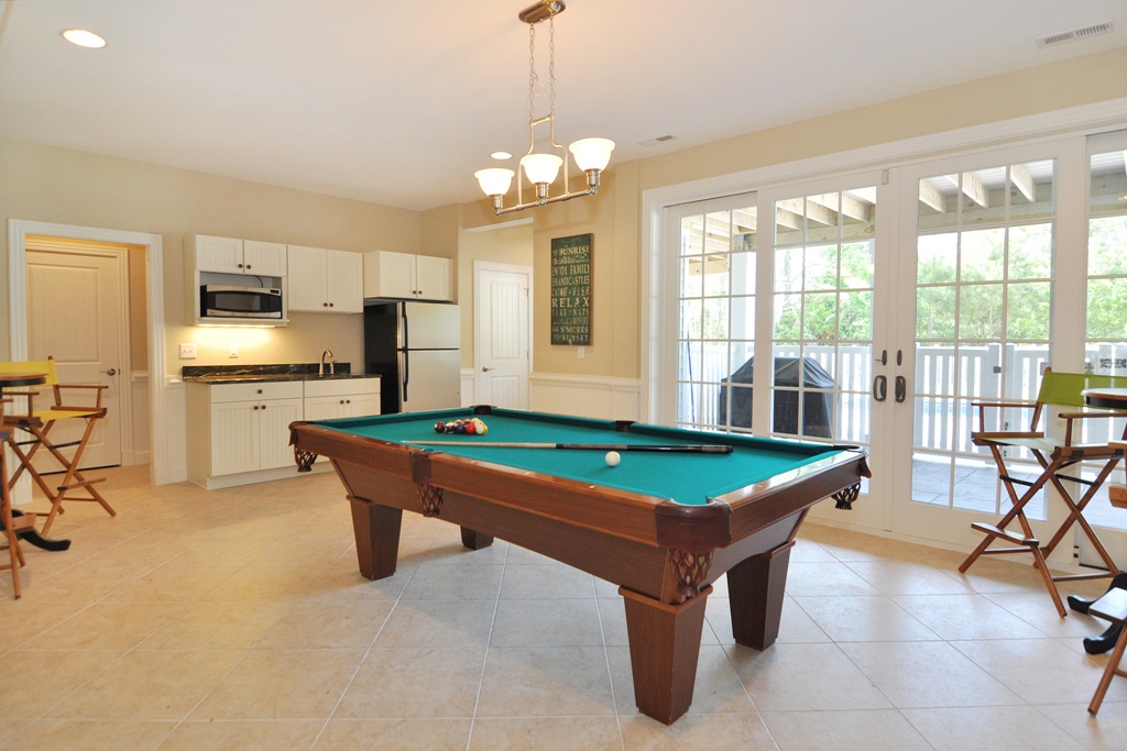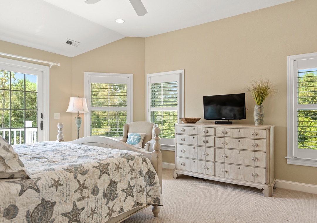 Four families agreed this was an amazing home. The community was wonderful, beach side amenities and proximity to groceries/shops/etc were great! But the house! Wow. From the decor to the layout, about as perfect as it gets. Wish badly there was more of a view but the house and pool are so great that it makes up for it. Slight view from the deck/dining room table. The near by 7th hole offered some of the best sunsets Ive seen, we took rented golf carts nightly. The pool was lovely, perfect depth and warm every day! Great sun exposure and kids loved the grassy areas. The cute frogs every night were also fun. We will hopefully be back sometime next year. This is my favorite house of the 7 I have stayed in.- Reviewed On: 7/11/2023