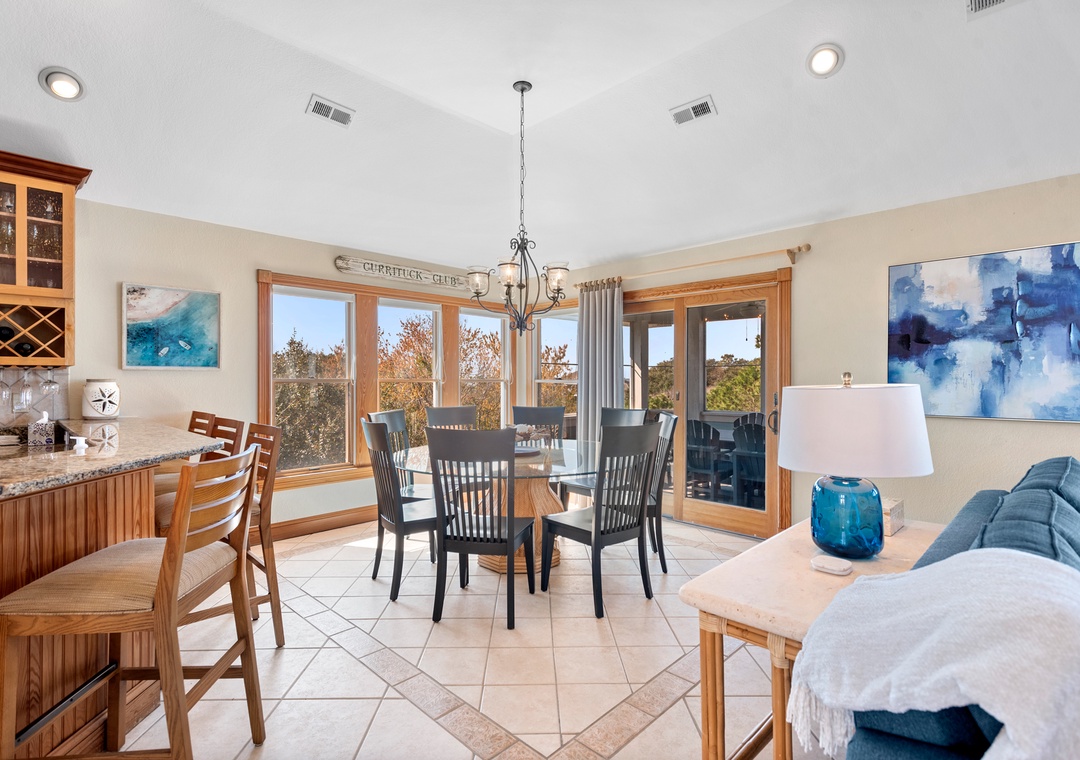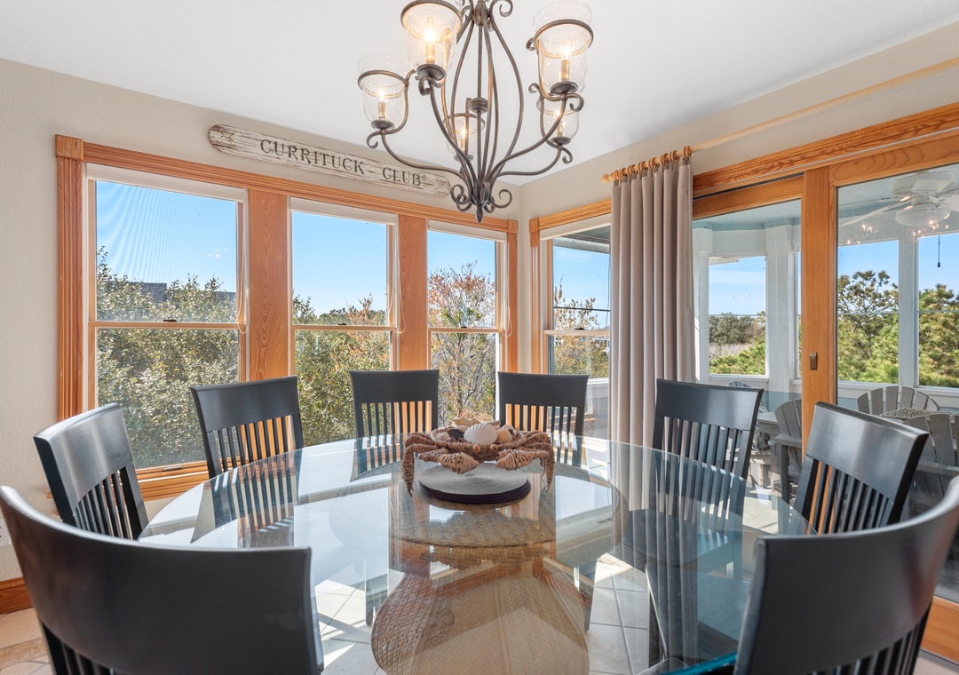 Enjoy endless sunsets at this Outer Banks vacation home located in the beautiful community of The Currituck Club in Corolla. Walk out onto one of 2 screened porches and watch the amazing view of the sunset over the Currituck Sound. We have a great outside area with a private pool and a hot tub to enjoy any time. You'll also enjoy The Currituck Club amenities, tennis courts, community pools and a trolley service (throughout the summer months). You'll find the elevator a great convenience no matter if you're checking in, out or just bringing up groceries.