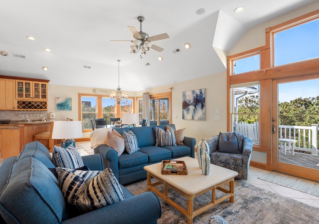 This was the perfect home for our family. No one to argue over who was getting the King BR, and no one arguing over who was next in the bathroom. Plenty of space for 3 families to spread out and have privacy, and yet still intimate enough to enjoy being together for vacation. Beds were comfy, and the water was hot and the pressure excellent!We loved cooking and no matter what we reached for, it was available. Plenty of table and silverware, along with serving pieces for large families. The dishwasher was surprisingly quiet --- so much so that we often had to doublecheck to make sure we had started the cycle! Pots and pans galore, and everything in between including a nice gas grill! We have never stayed in a home as well equipped for cooking! And we loved, loved, loved the large round dining table! The upper deck with views of the 7th hole and gorgeous sunsets quickly became our favorite spot to be! Early morning coffee listening to the birds chirp and the Ospreys fly was amazing. There was one large bird that would fly over several times with breakfast in claw for the next! We enjoyed the Trolley service and the beach valets very much. Please make sure you tip these hardworking people that are making your stay easy and enjoyable!!This home feels like "home" -- comfortable and welcoming. Thank you!- Reviewed On: 6/1/2021
