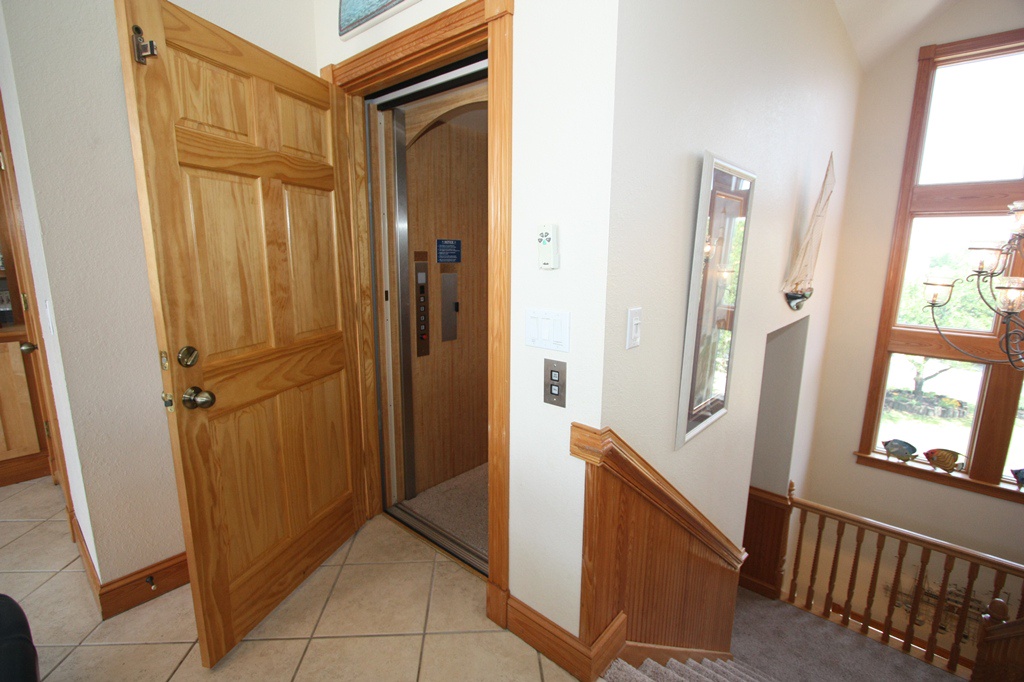 Level One - Entrance way is on lower level through garage. Door width is 35 inches and the lip is 1/2. The elevator goes to all floors. The door width is 30 inches wide. The elevator dimensions are 40 inches x 40 inches. Approach on the lower levels and upper levels is adequate for wheelchair...a little tight on the mid-level landing.