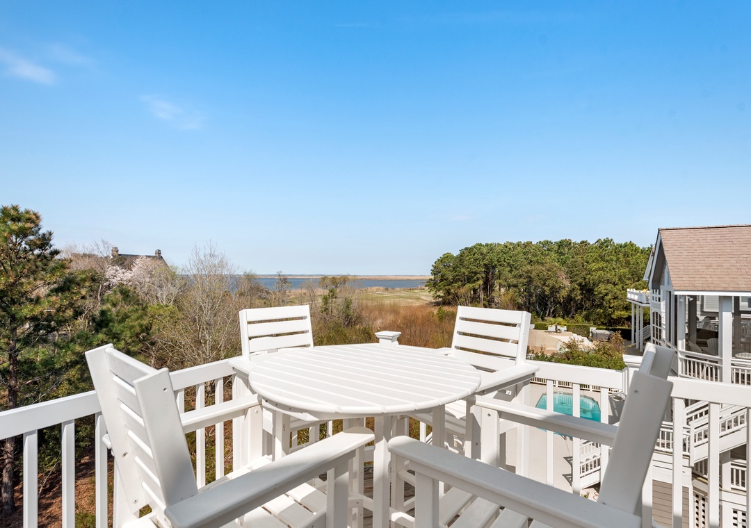 This fabulous Outer Banks vacation home offers outstanding views of the picturesque Currituck Sound and the 7th tee box fairway. Unwind in the screened-in hot tub or splash in your very own 12' x 28' private pool. Endless Sunsets offers three master suites, and all of the bedrooms have decks or private balcony access. Sharpen your golf game with putting practice or jog along the extensive lighted trails.