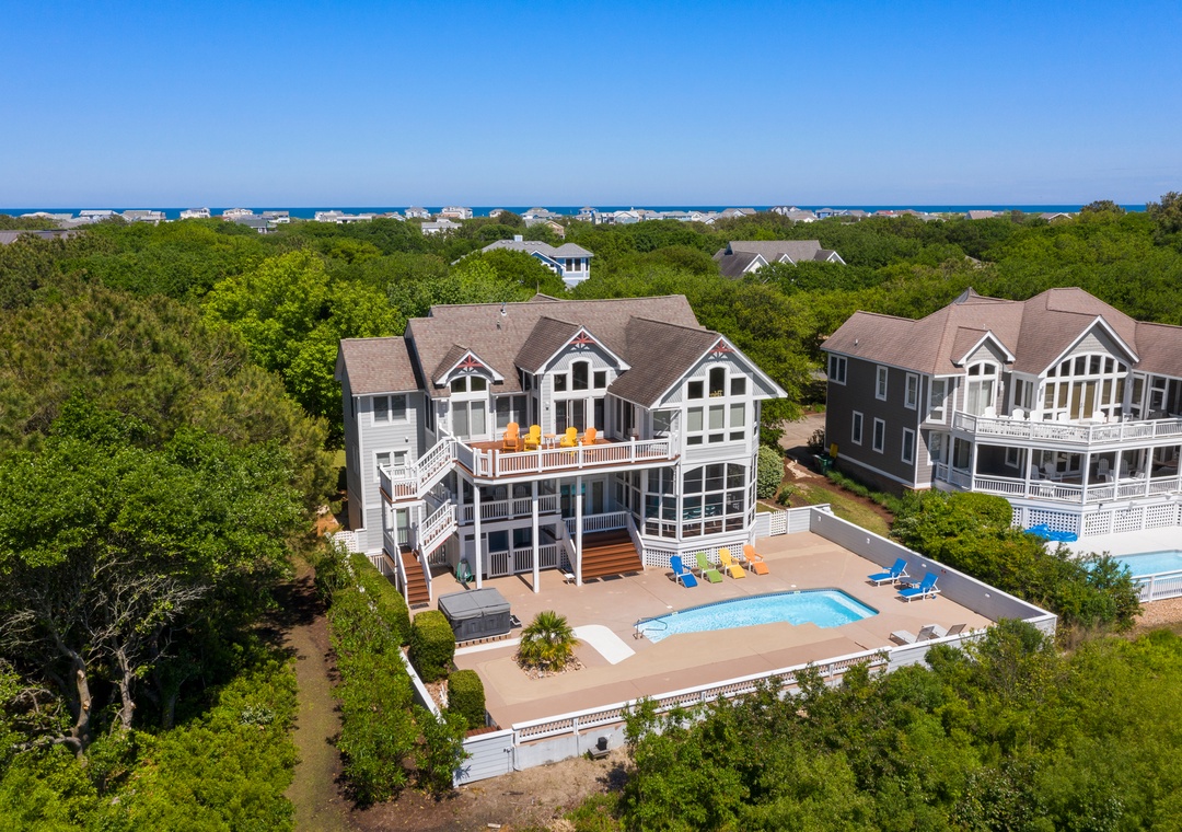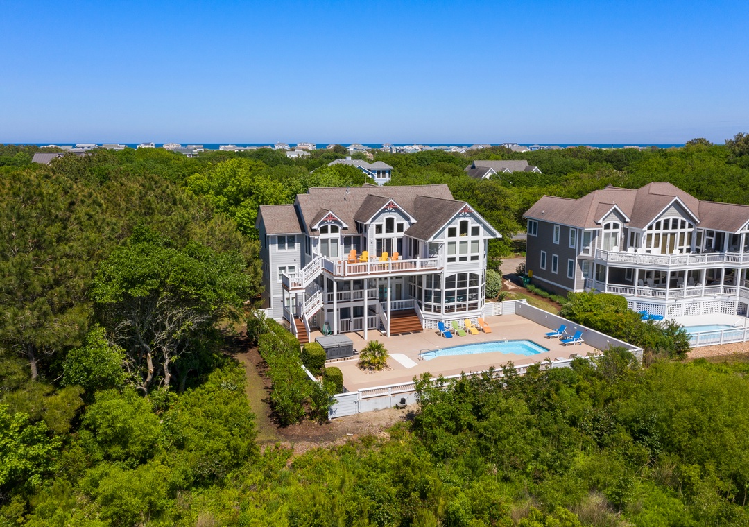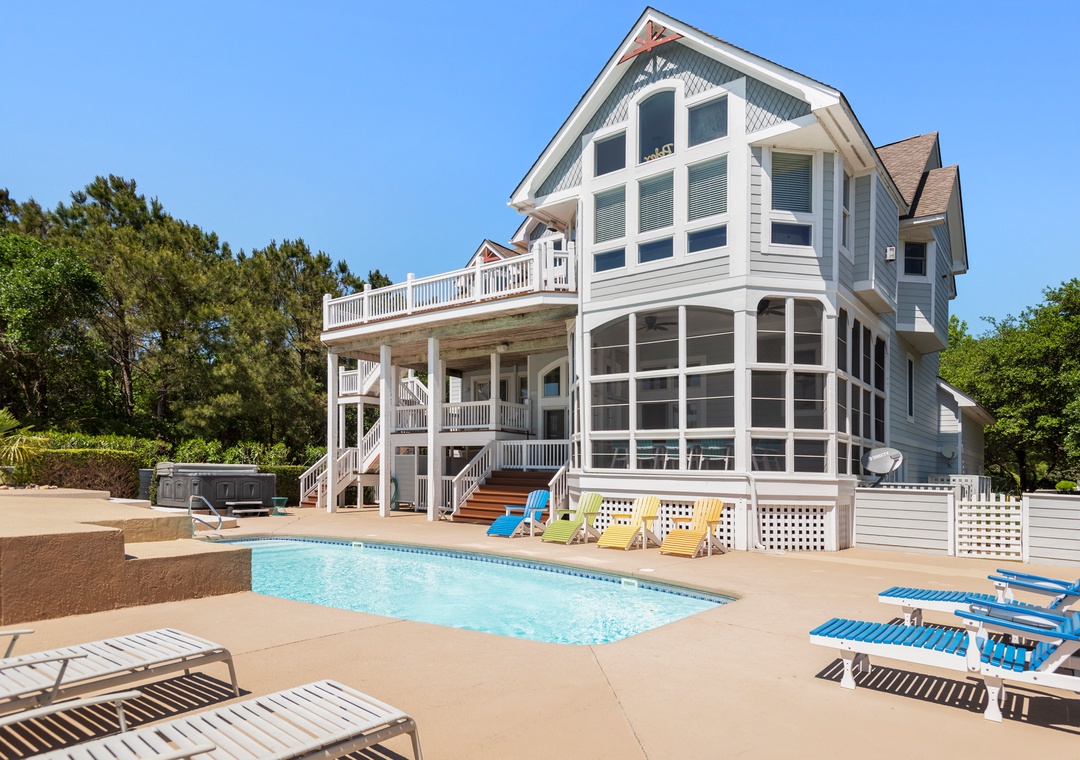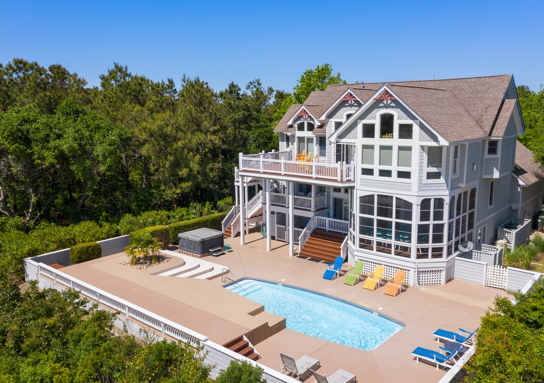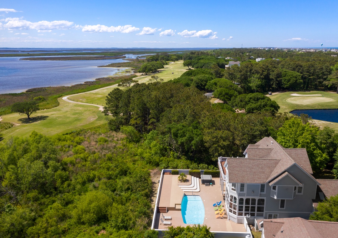 Updates for 2025: New flooring, new furniture, and fresh paint throughout - photos coming soon! Make your next vacation choice an easy one and reserve 7th Heaven in Corolla. When you arrive at this beautiful home you can leave your cares behind. Overlooking the 7th tee and views of the sound you can have that unforgettable Outer Banks vacation escape with family and friends. Spend the day in your own little oasis by the pool or after a fun day at the beach and pool relax in the hot tub while watching an amazing sunset over the sound. The open great room and gourmet kitchen will have everyone gathering for those delicious meals and some movie time or enjoy a game of pool in the rec room. No need to worry about steps for carrying in the luggage and groceries use the elevator that has access to all levels.