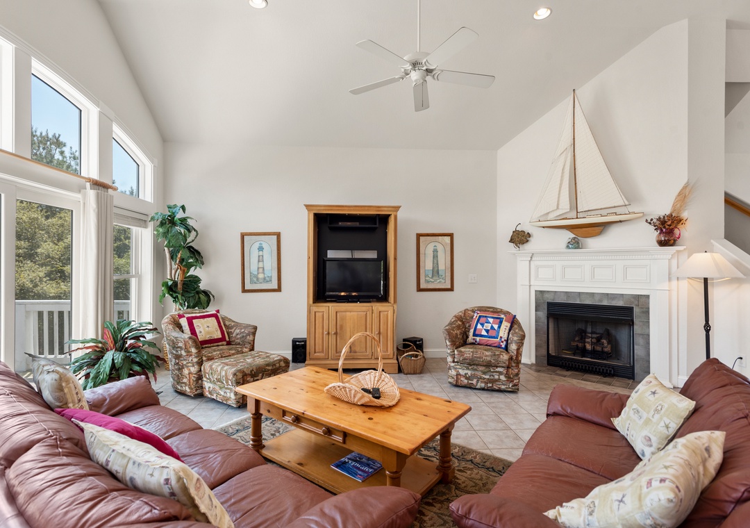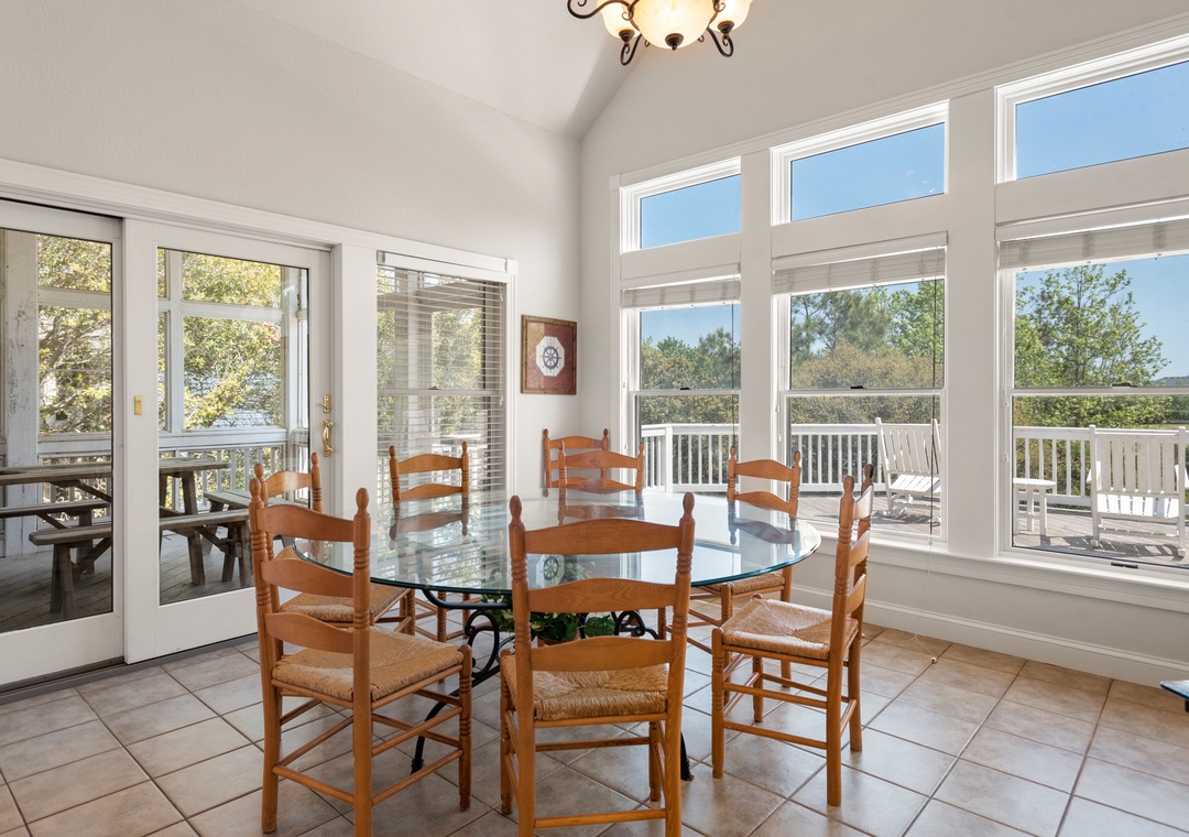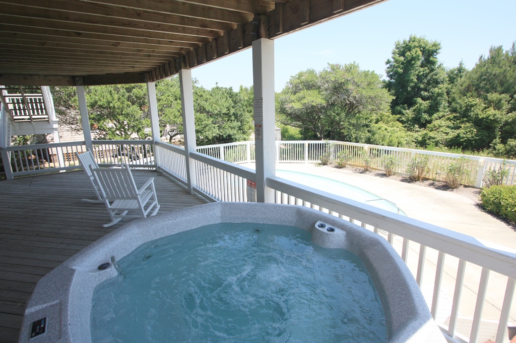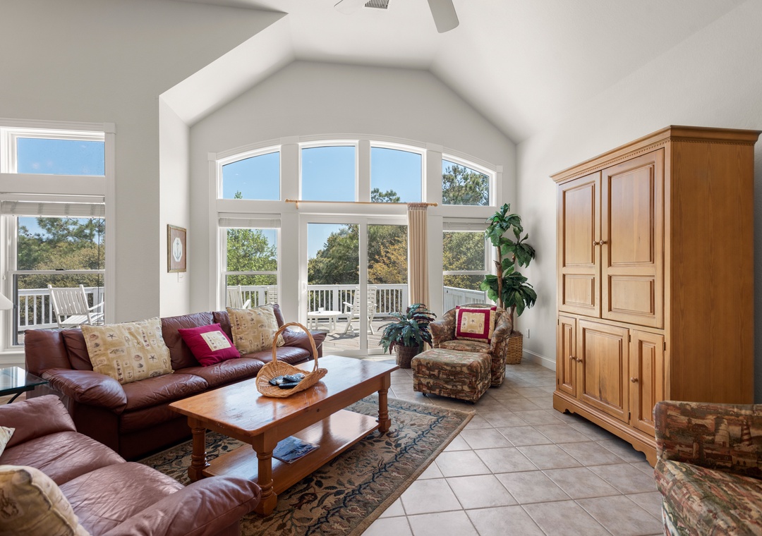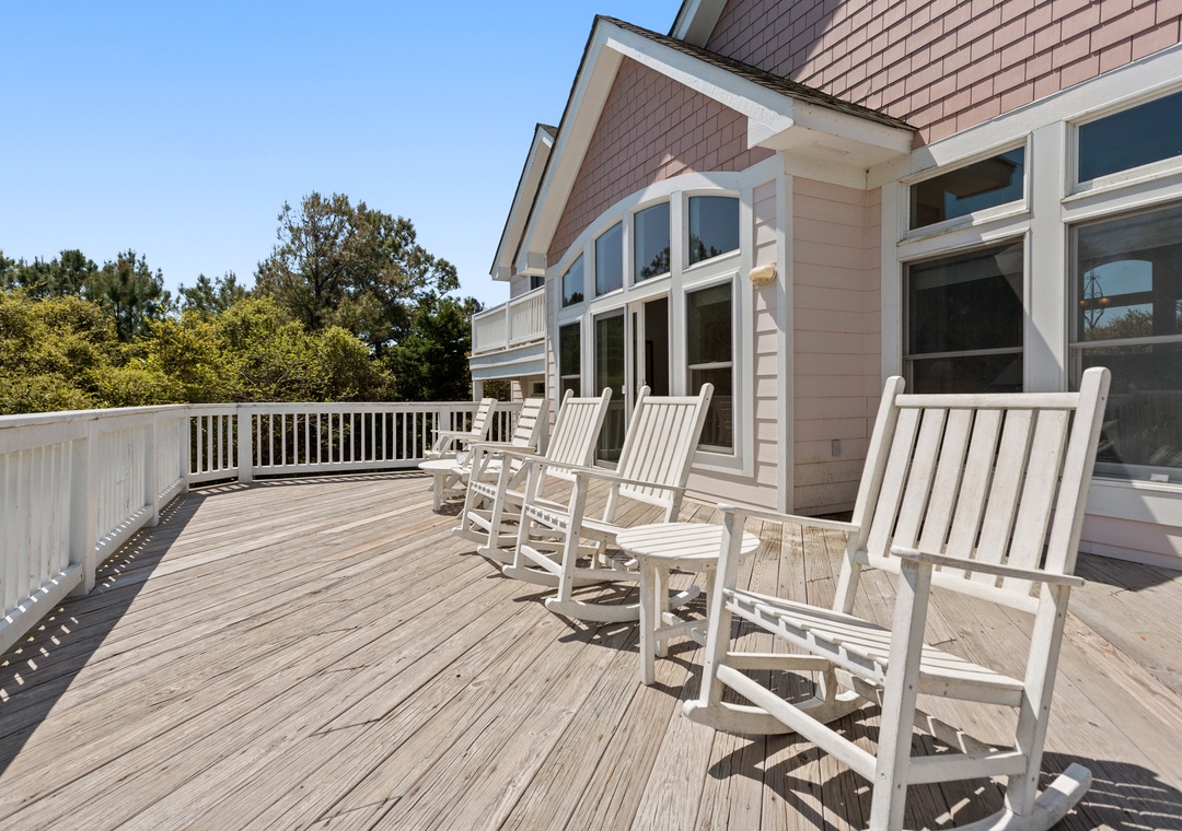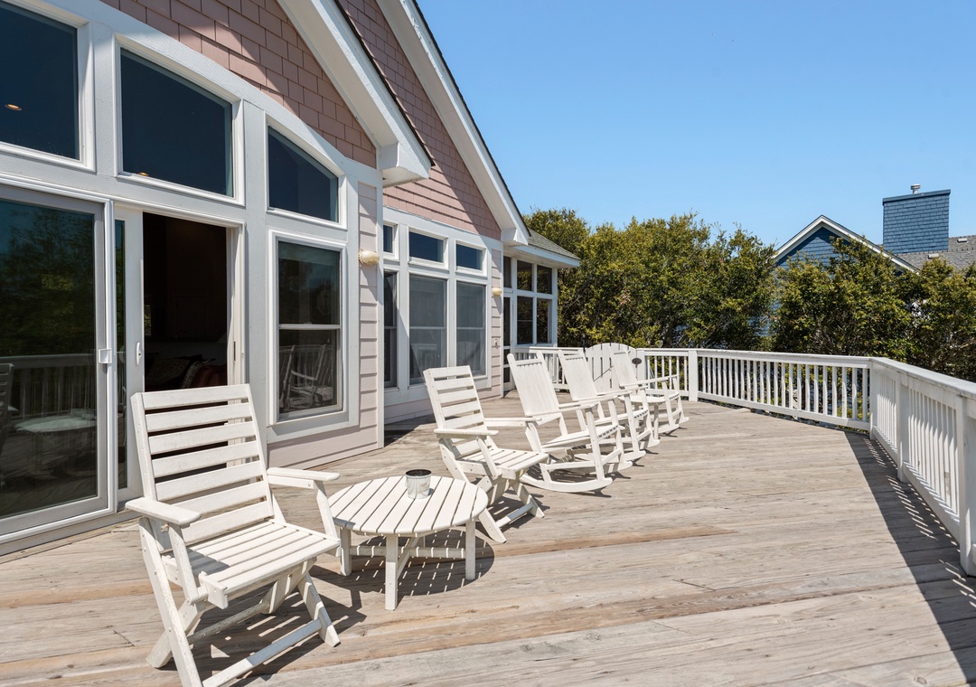 Stunning Surroundings: Take a leisurely stroll down the community walking paths to Sunset Bridge for picturesque sound views or walk to ice cream, Dougie’s Donuts, Tap House, or the Harris Teeter. The home features extensive covered porches w/ rocking chairs and balconies. Catch a nap on the covered porch daybed swing or snuggle around one of the cozy fire pits, perfect for enjoying the lovely Corolla evenings.