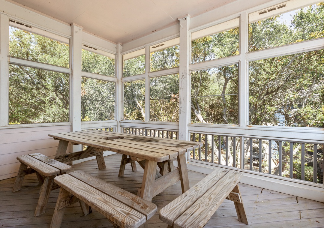 Outdoor Oasis: Step outside to your private screened-in porch, ideal for relaxing after a refreshing swim in the pool or a soak in the hot tub. Rinse off in the brand-new outdoor rain shower with dual heads, perfect for washing off the beach sand.
