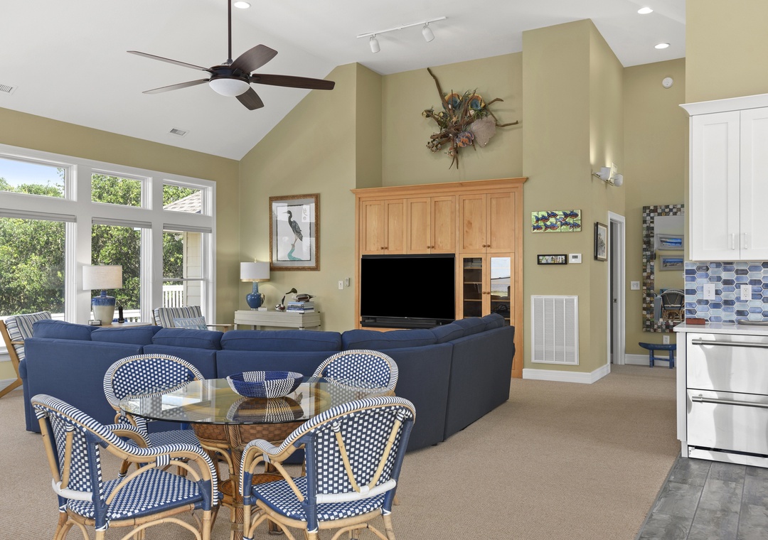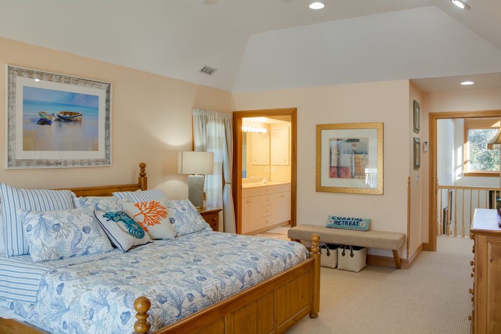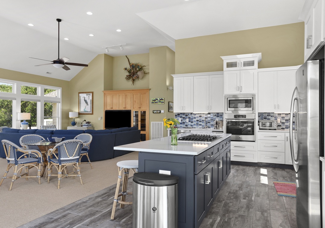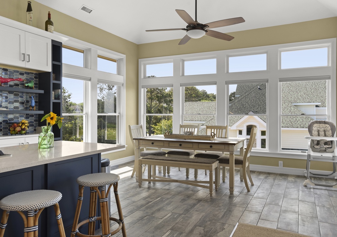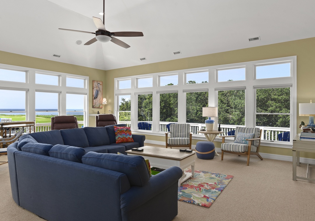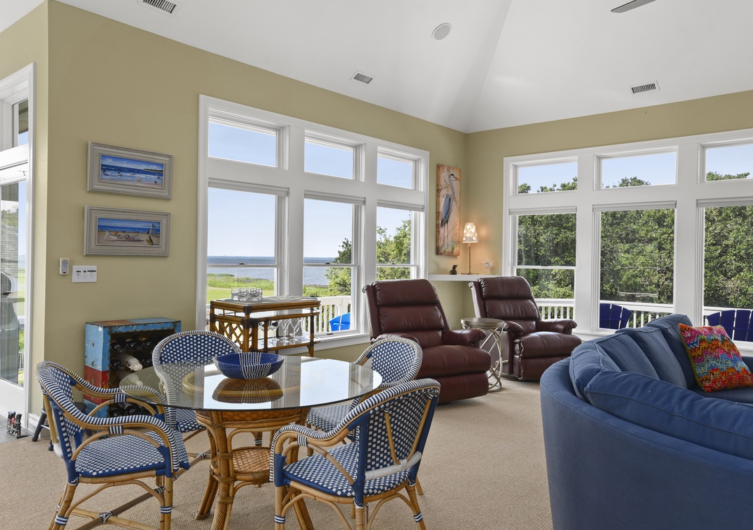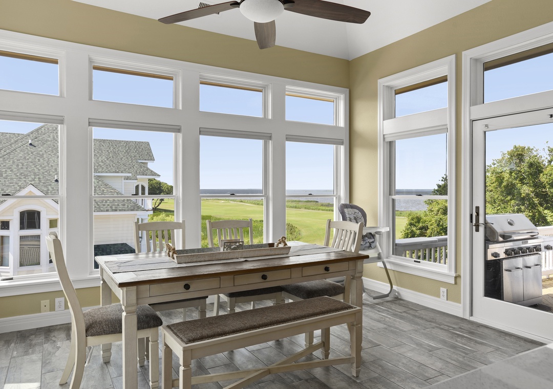 We love this house. We stayed with two other families with kids ranging from two to thirteen. Some of our favorite things about this house: the view of the sound (and sunsets from the fairway filled with wildlife), the awesome pool and deck area, Pine Island pool and beach access, the screened in porch at night, the game room and the general layout of the house. The only critiques: the kitchen could use some updates in terms of cabinetry and accessories, and the the water pressure in the MBR beneath the dining room is very weak, but otherwise this house makes for an outstanding vacation experience.- Reviewed On: 9/27/2023