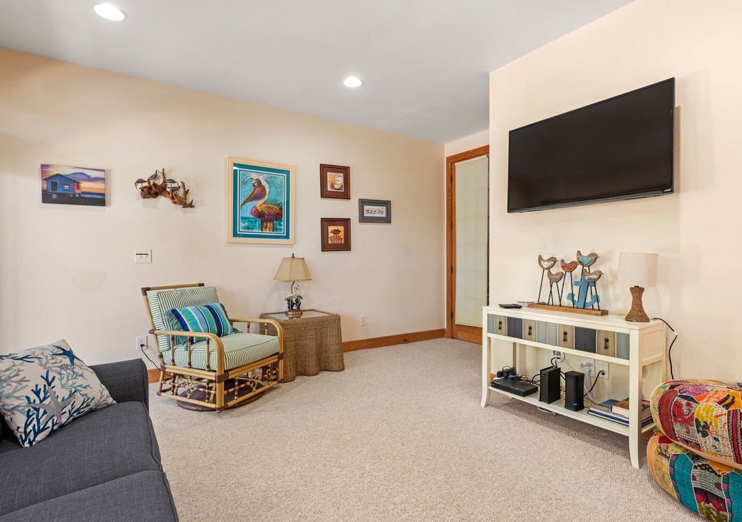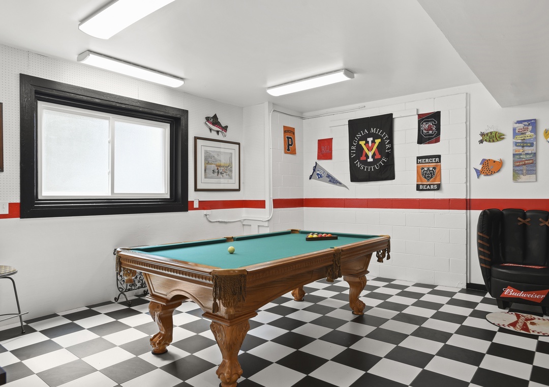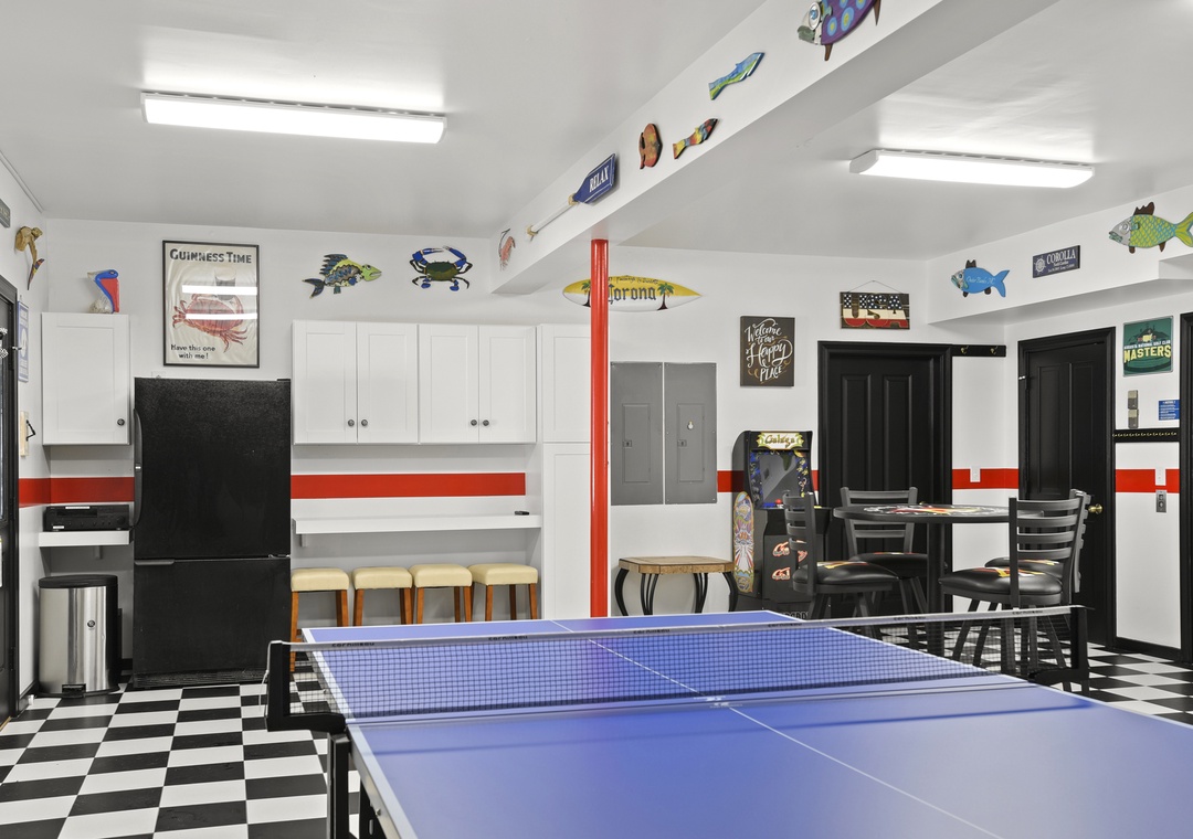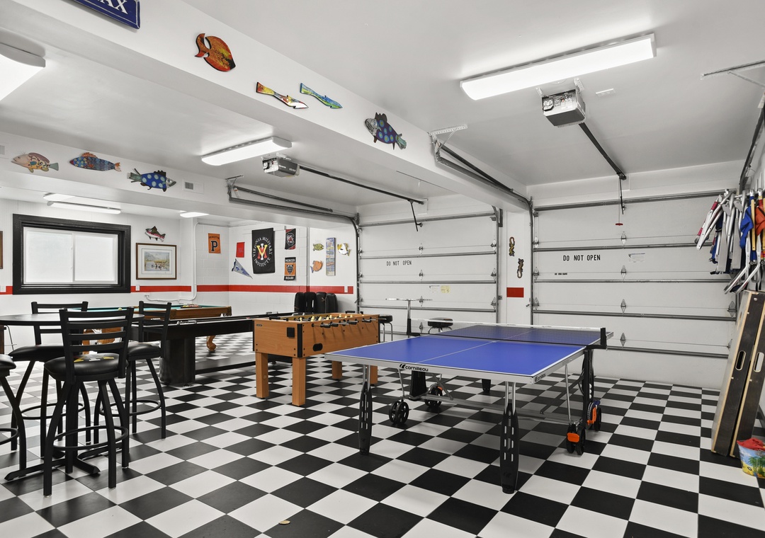 We also offer TVs, Blu-Ray player, DVD players, surround sound speakers in the great room, 4 Master bedrooms, decks, and a grill. We also provide entertainment and gaming in the garage as a rec room living space with air conditioning and heat--including a pool table, ping pong, shuffleboard and foosball tables. For families with children, we have a pack-n play and a high chair. Our home comes equipped with a screened porch, a hammock, an enclosed outside shower, a water filtration system in the kitchen.
