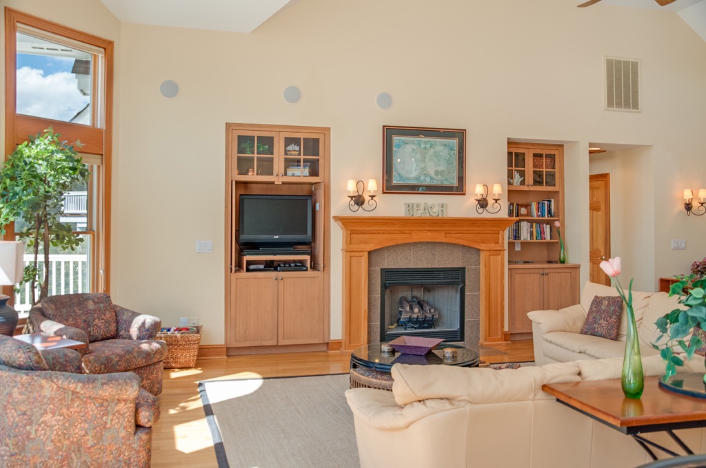 Amenities and features at 'Heaven on Seven' include a hot tub, garden Tub, 2 screened porches, 3 Master Suites w/King beds, Surround Sound System, stereo w/CD, outdoor speakers, 2 dishwashers, 32 cu ft refrigerator, deck furniture, poolside furniture & lounges, rockers, swings, gas fireplace, Pool Table, card table, high chair, pack'n'play, horseshoe pit, professional 5 hole putting green, sandbox for the kids!