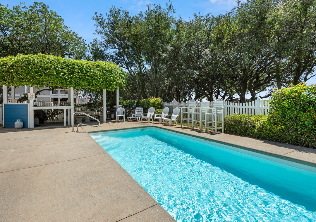 You'll enjoy poolside cookouts at the bar, grill area, relaxing on the screened porch, while taking in the fabulous views and sunsets or gently rocking or swinging on the covered porch. You may decide to soak in the garden tub or enjoy the 7-jet shower in the owner's master bath. All of this will further convince you this is truly 'Heaven on Seven'. The exceptional qualities of this OBX vacation home are reflected in the decor, the furnishings, the fully equipped kitchen and all of the thoughtful, extra touches that the owners have provided.