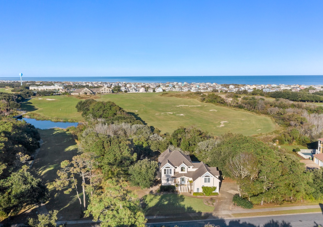 This beautiful, thoughtfully planned Outer Banks vacation home is located beside the 9th tee box, just a short walk from the Currituck Club Clubhouse and Fitness center. Fully equipped, comfortable and spacious. Features separately screened in hot tub and dining areas to ensure a carefree Corolla vacation. See why this unique floor plan is so popular. Bonus/game room features a daybed with trundle and 4-in-1 game table and air hockey table.