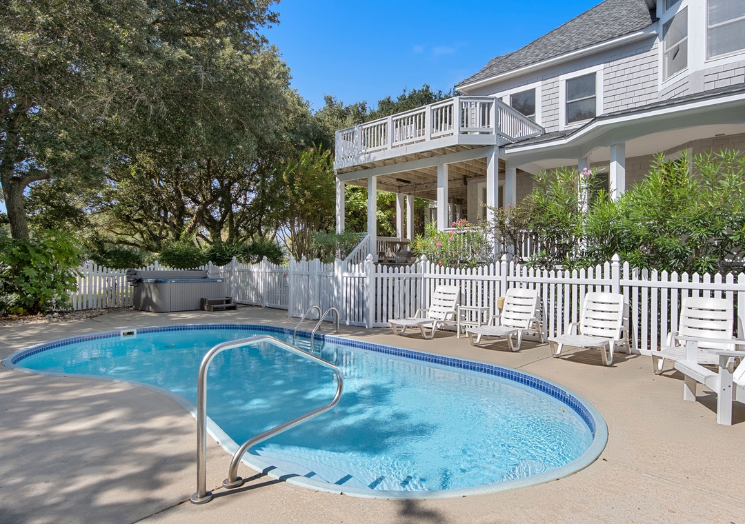 Additional features at this Corolla retreat include: Surround sound stereo, WiFi. 4 master bedrooms, rec room with pool table and mini fridge, wine cooler in wet bar, 2 ovens, enclosed outside shower plus a cabana bath and second shower near pool, garage, grill and high chair.