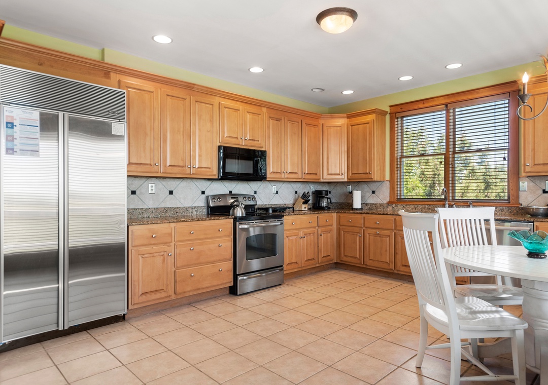 Granite countertops, custom hardwood, and tile work are featured throughout the house. Other amenities available to you at the home are five bedrooms including three with private baths, five and a half bathrooms, Roku TVs with cable, a gas fireplace, pantry, and outdoor shower.