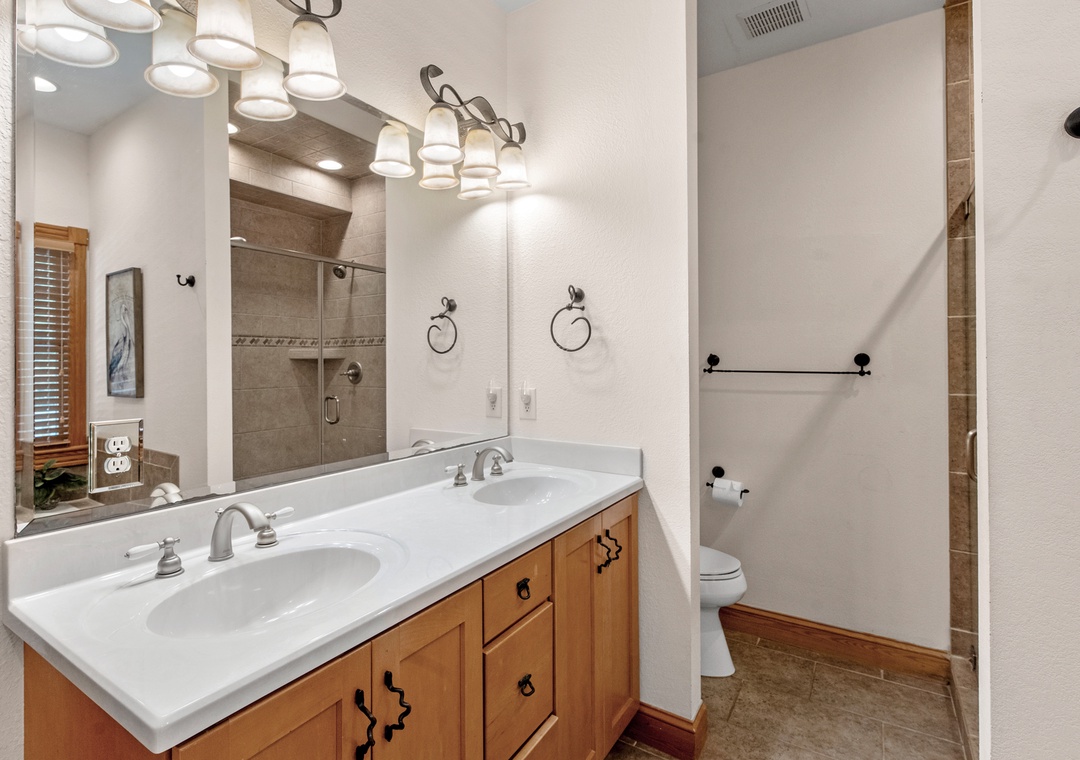 Back inside, over 3400 square feet of living space and six bedrooms will accommodate multiple or extended families. There are two king ensuites and a large bunk room on the bottom floor with two pyramid beds perfect for the kids. The top-level family room with an attached deck serves as the home’s third common area. There are many options for spreading out while still being under one roof.