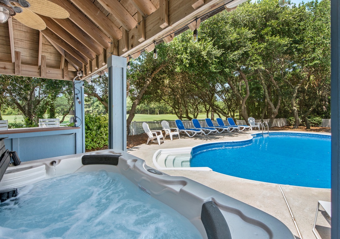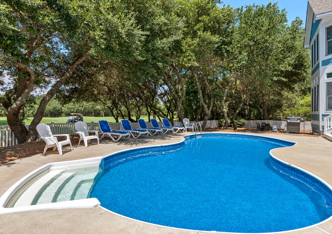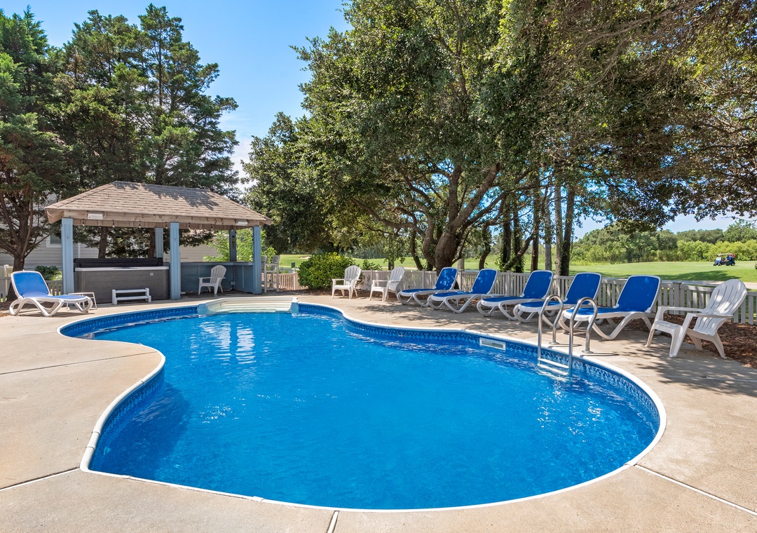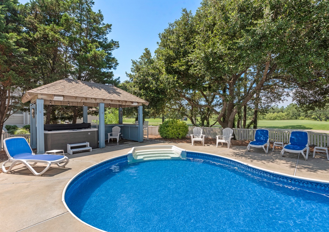 Space, Seclusion, Serenity, and one amazing golf course! This soundfront home is nestled amidst the natural beauty of the Outer Banks on the 18th fairway of The Currituck Club. Here you can relax with glorious views of peaceful open space from the front porch or enjoy the lovely sunsets from the back patio, hot tub, pool and 'tiki' bar. You can walk to the new Clubhouse or fitness center & enjoy all the community amenities. Play a round of golf or splash your cares away in your own private pool. A perfect getaway for the entire family.
