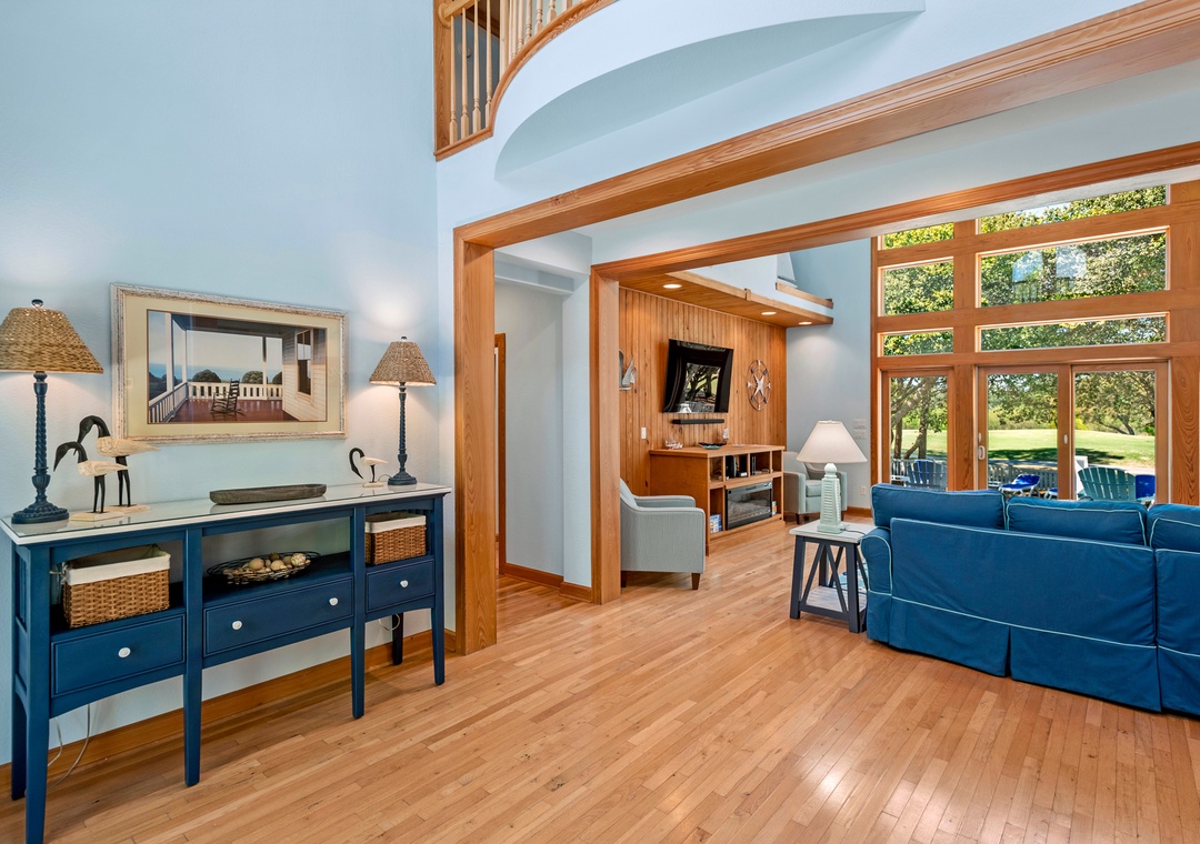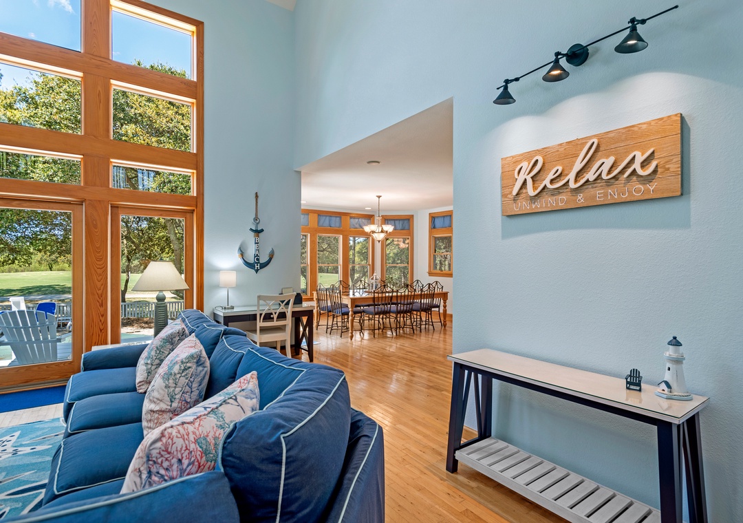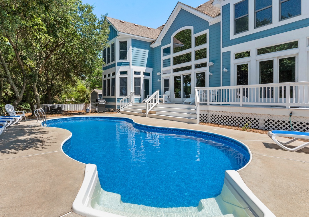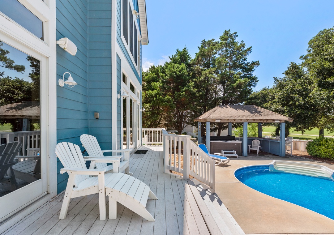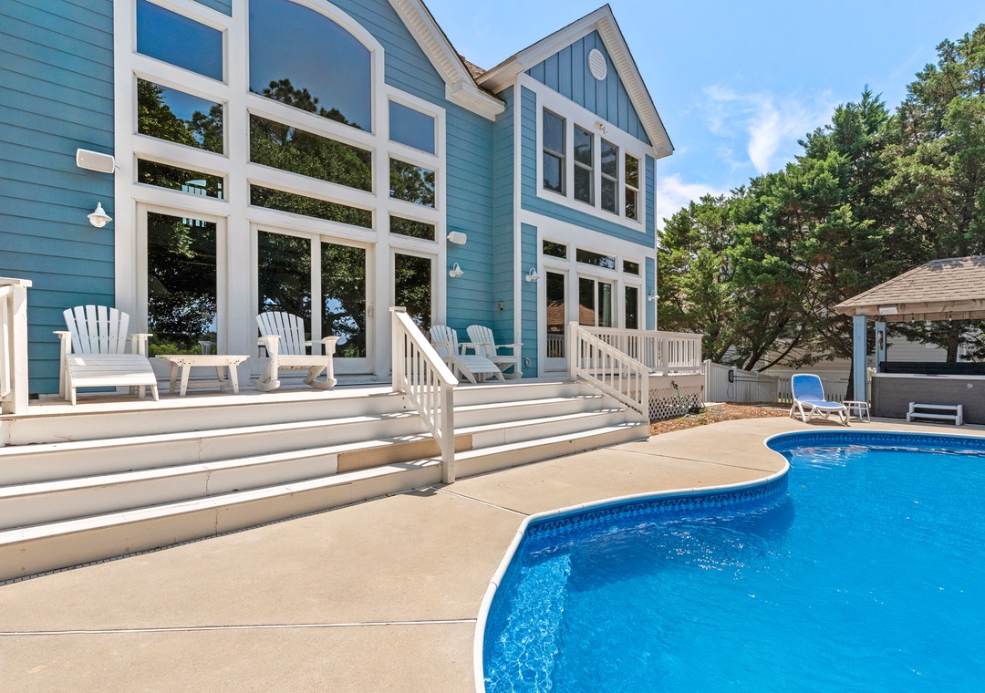 Space, Seclusion, Serenity, and one amazing golf course! This soundfront home is nestled amidst the natural beauty of the Outer Banks on the 18th fairway of The Currituck Club. Here you can relax with glorious views of peaceful open space from the front porch or enjoy the lovely sunsets from the back patio, hot tub, pool and 'tiki' bar. You can walk to the new Clubhouse or fitness center & enjoy all the community amenities. Play a round of golf or splash your cares away in your own private pool. A perfect getaway for the entire family.