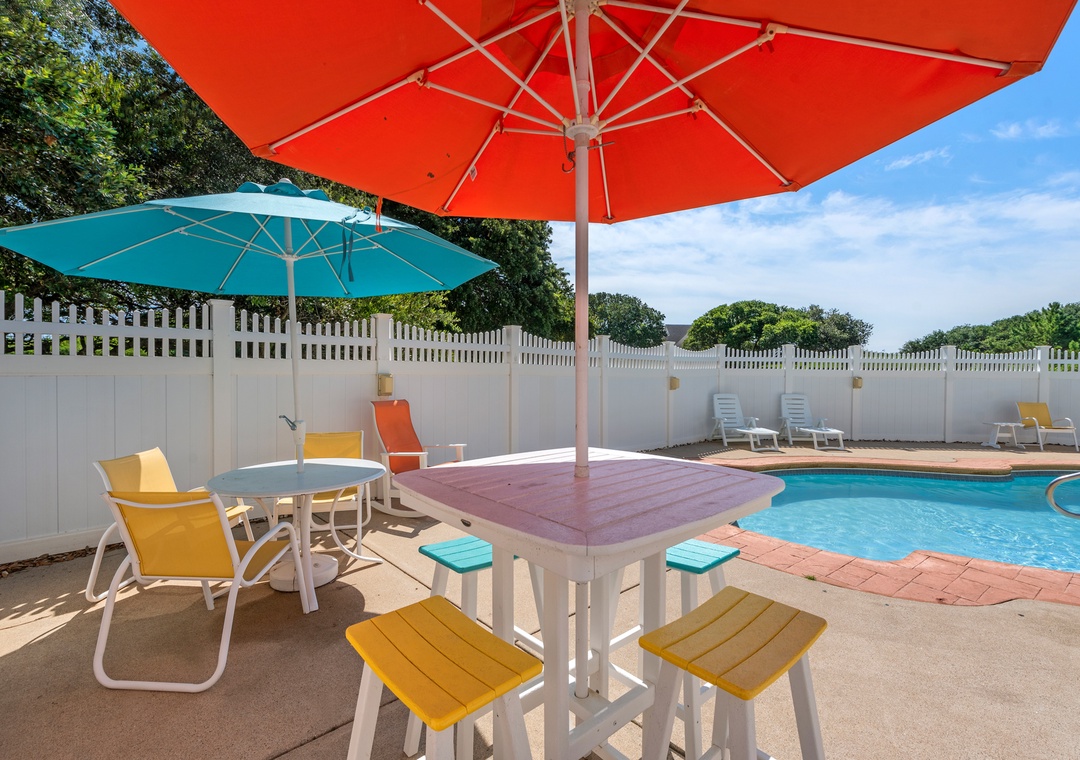 This home includes a seasonal membership at the Pine Island Beach Club, just a 10-minute drive south. Enjoy oceanfront amenities like a large pool with ample seating, a wading pool for kids, and a dune-top deck with stunning views. Convenient facilities include restrooms, showers, a locker room, and a snack shop. With onsite parking, bike racks, and private beach access, your beach days are effortless.