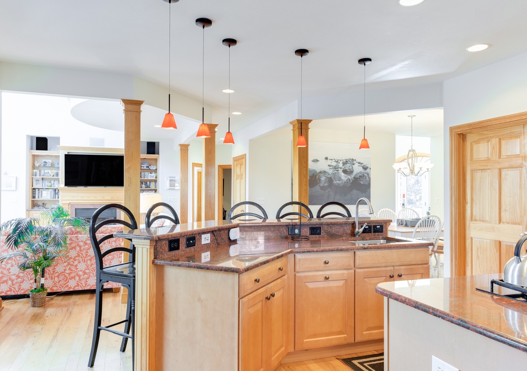 Cleaning your fresh catch is no problem at the fish cleaning station... then grill them up on the deluxe gas grill located just outside the kitchen on the sun deck. Bon Appetit! The chef of the family will love this beautiful kitchen with granite counter tops, double dishwashers, a gas cook top, prep sink and breakfast bar. A large screened deck off of the kitchen is the perfect spot to enjoy your morning coffee while looking at the stunning views of the first tee and fairway.