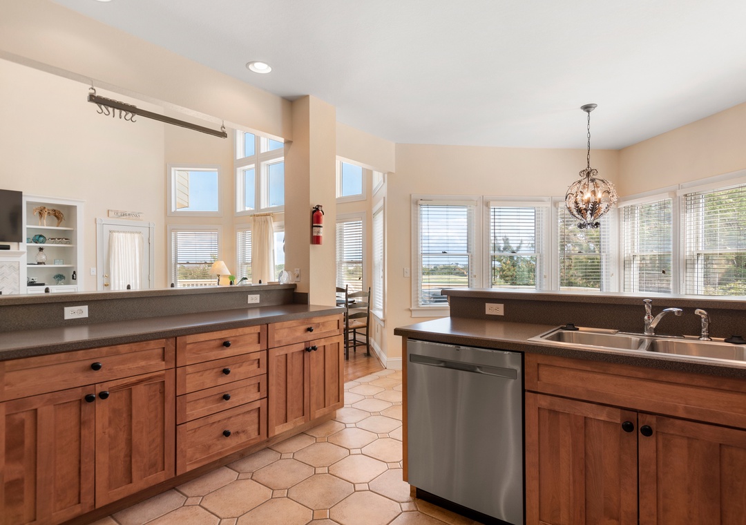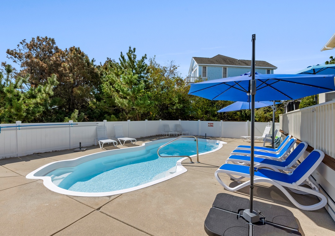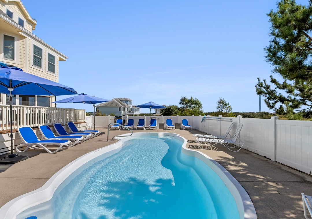 Our group of seven, two adults and five kids, thoroughly enjoyed this house for a week in late June. Every piece of furniture is comfortable and the house was fully stocked. There were numerous umbrellas and pool toys in the garage, and the umbrellas were very much appreciated on the sunny afternoons when the sun pours down. There is a little shade from the trees on one side. The trees also provide excellent coverage between the house on the right. The kitchen is fully stocked and nicely organized. The laundry room is right off the kitchen and makes for great additional storage. The Currituck Club trolley runs consistently and is about a one minute walk from the house; the kids often used it if they wanted to use the community facilities. We had zero issues. The house is even more beautiful than the pictures (the house must have been repainted since the pictures were taken because the widow's watch is a lovely shade of blue). So glad we got to stay in such a beautiful home for a week.- Reviewed On: 8/19/2024