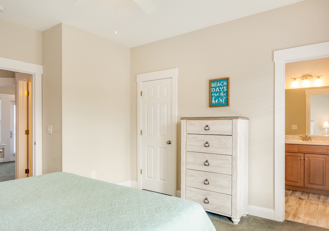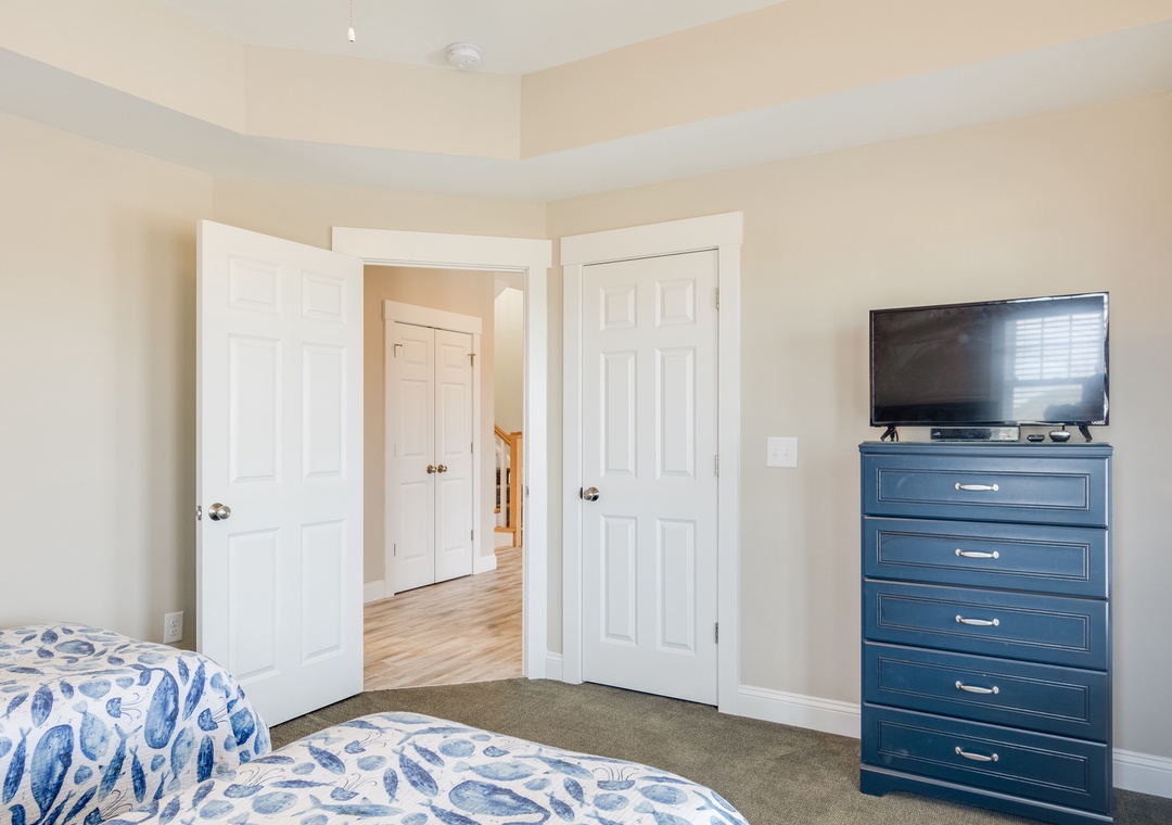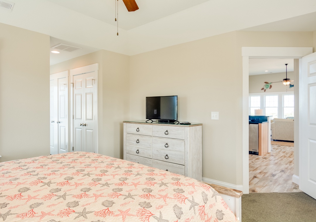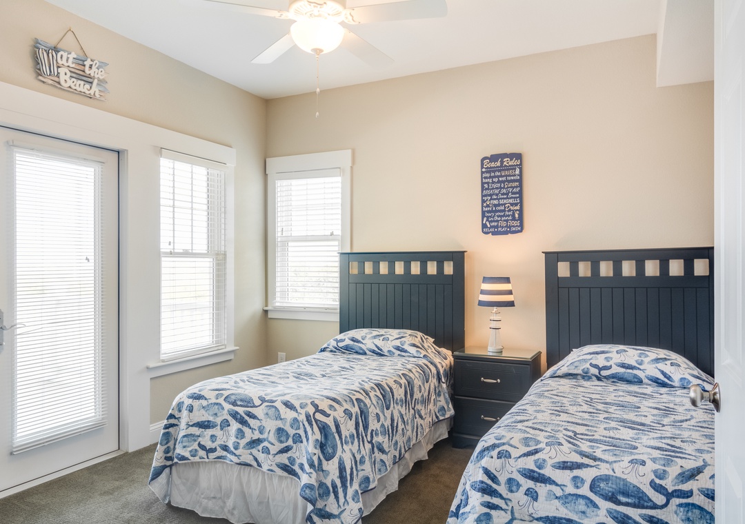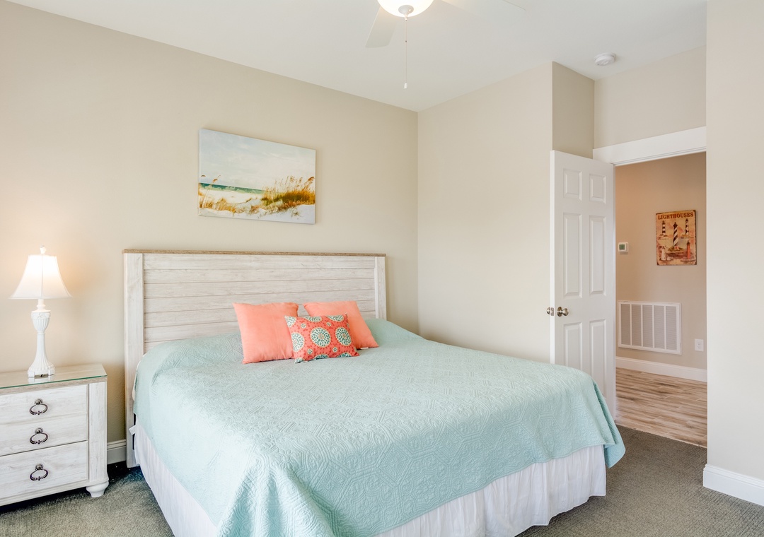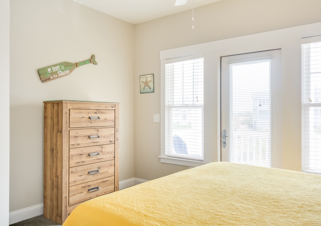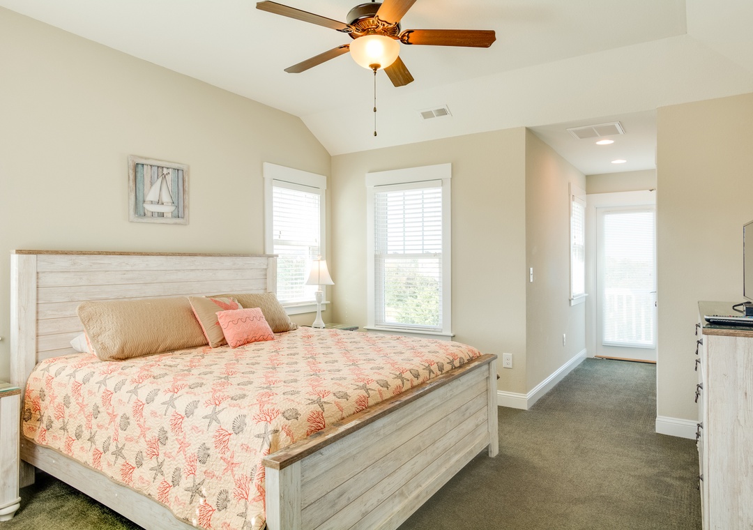 Take the elevator up to the mid-level where you'll find four bedrooms, three king master suites (one is wheelchair accessible) and two twins, each room with their own deck access. The den is a cozy place to get some alone time or watch a movie, and doubles as extra bedding with a queen sleeper sofa. The classic southern design with deck access from every bedroom provides plenty of outdoor living space.