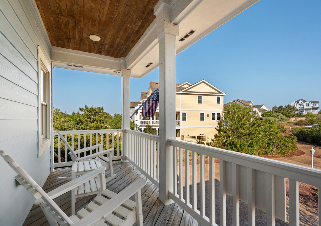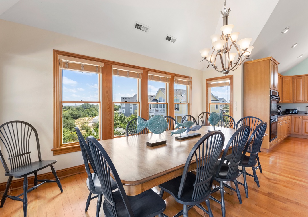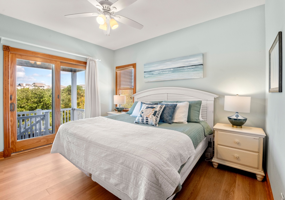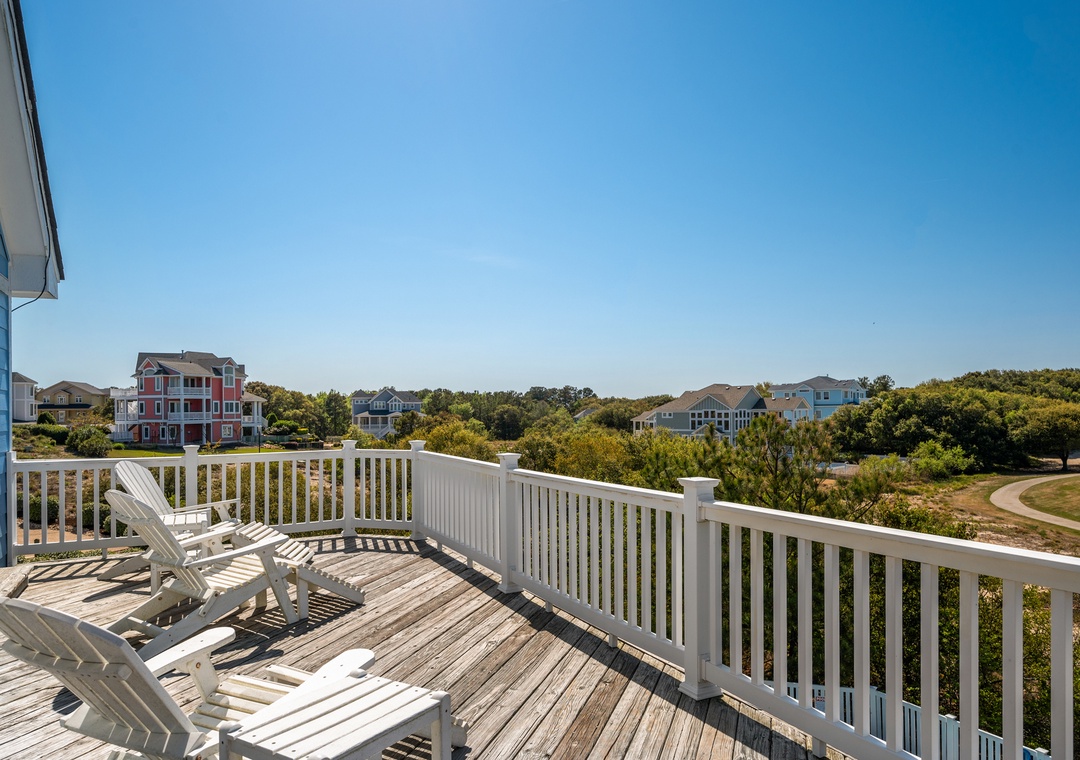 This house was above and beyond our expectations! It was very clean and beautiful. There were many unlisted amenities including: a fully equipped kitchen (standard tools plus an air fry, espresso machine, Kitchen Aid, ice maker etc.); a nice outdoor shower; private beach access for the duration of your trip which included a pool & snack shop for Village Realty guest with free parking (public parking was full one day). This closes at 5pm; eight bikes for a five minute ride to Harris Teeter, a souvenir shop, pizza, an excellent horse tour, Duck Donuts or the Community Center with yet another pool, a nice gym and all equipment needed for pickleball, shuffleboard, or basketball. A round of golf was only $5. There is a slight view of the ocean next to the table of your tall enough.