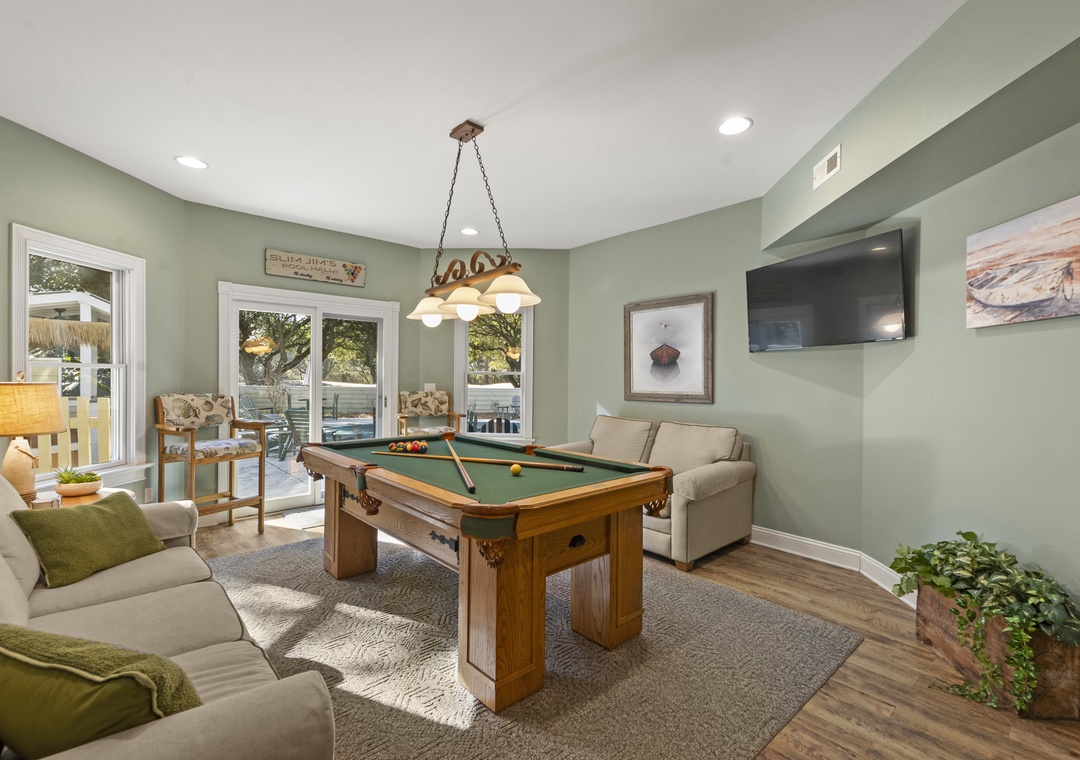 Outside, enjoy the sun deck, screened in porch, a sparkling private pool, and a soothing hot tub, brand new Tiki Bar, all surrounded by the natural beauty of the Outer Banks. With a game room, garage, and access to premier Currituck Club amenities including golf, recreation, and tennis courts, Meant to Be truly lives up to its name.