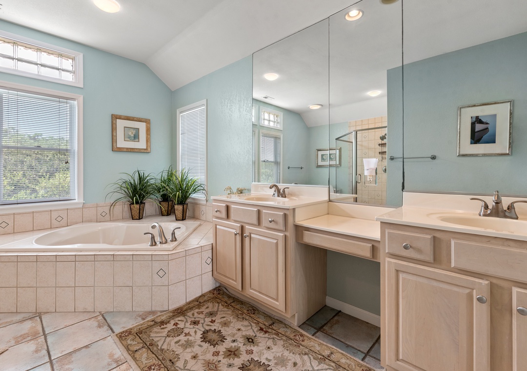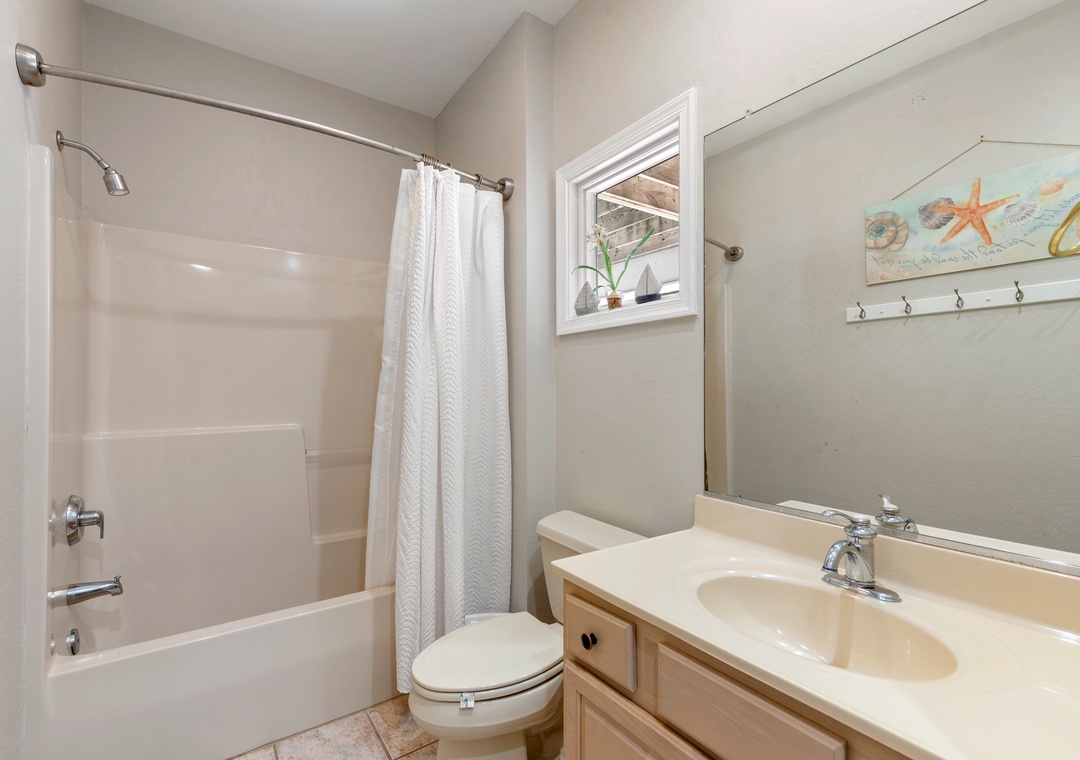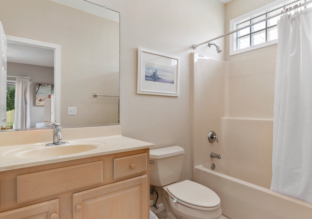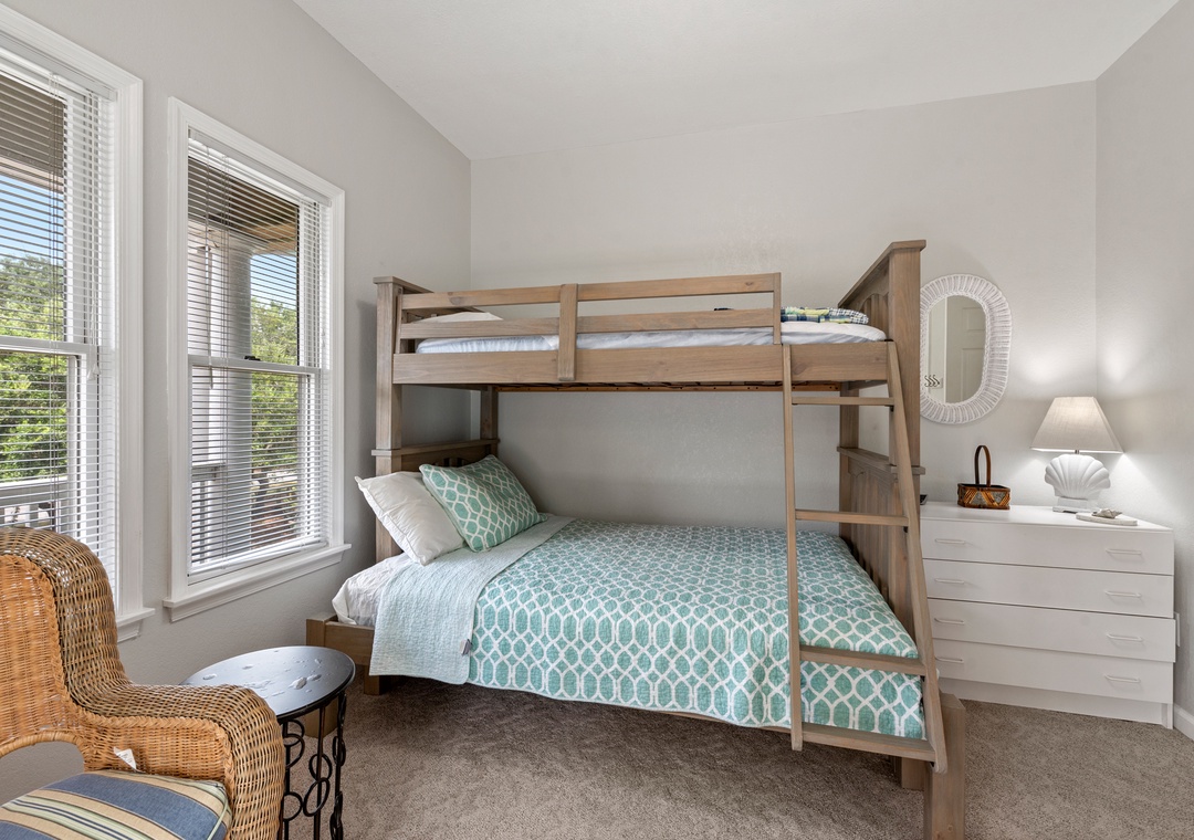 At the end of the night, retreat to the primary suite on the main level, which includes a private bath with dual vanities, jetted tub and large walk-in shower. Four additional bedrooms are located downstairs, two of which include ensuite baths. The mid-level den can serve as an additional living space, with a comfortable sleeper sofa and TV. The ground level is dedicated to fun and relaxation. Between the billiard table, foosball and ping-pong, Heron Haven's game room offers a variety of indoor recreation options. Outside, splash in the private pool or soak in the hot tub. There's also a grill and outdoor dining set for poolside cookouts.