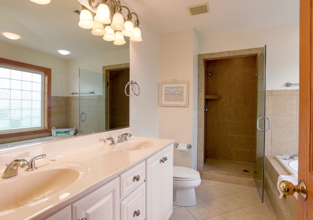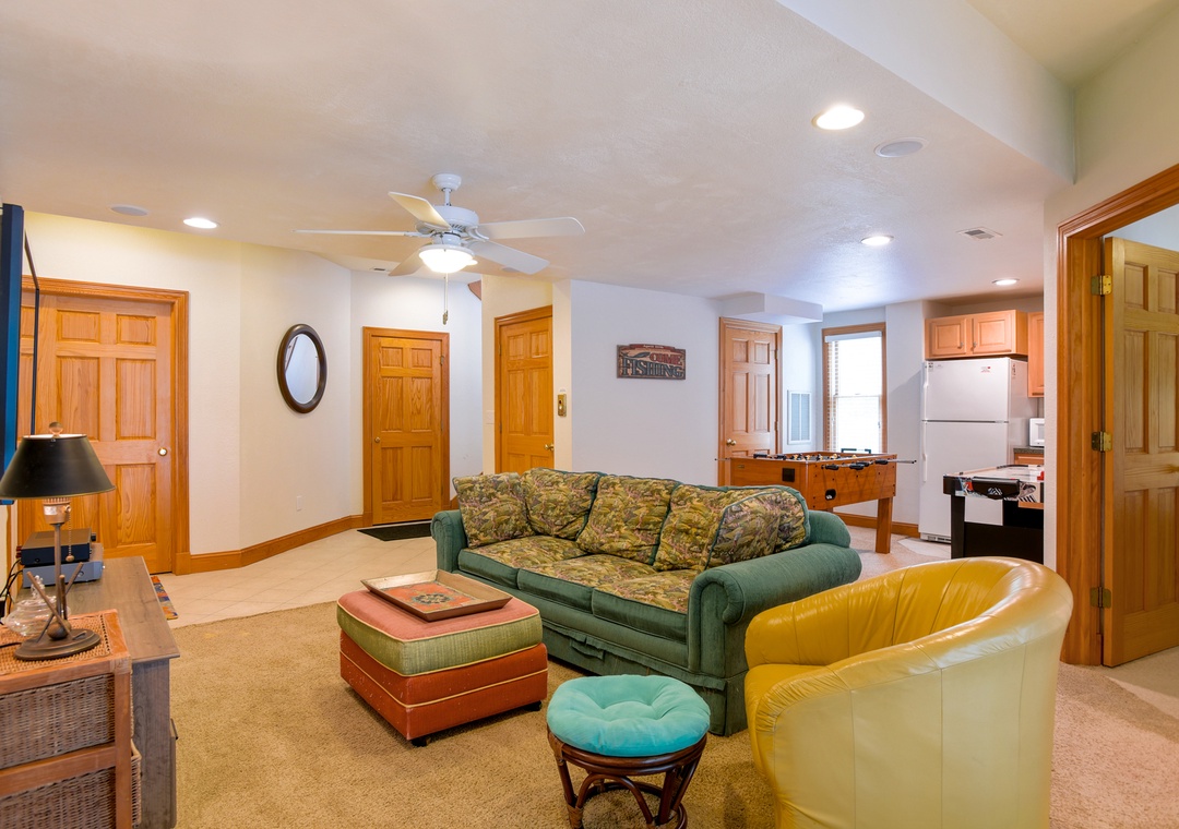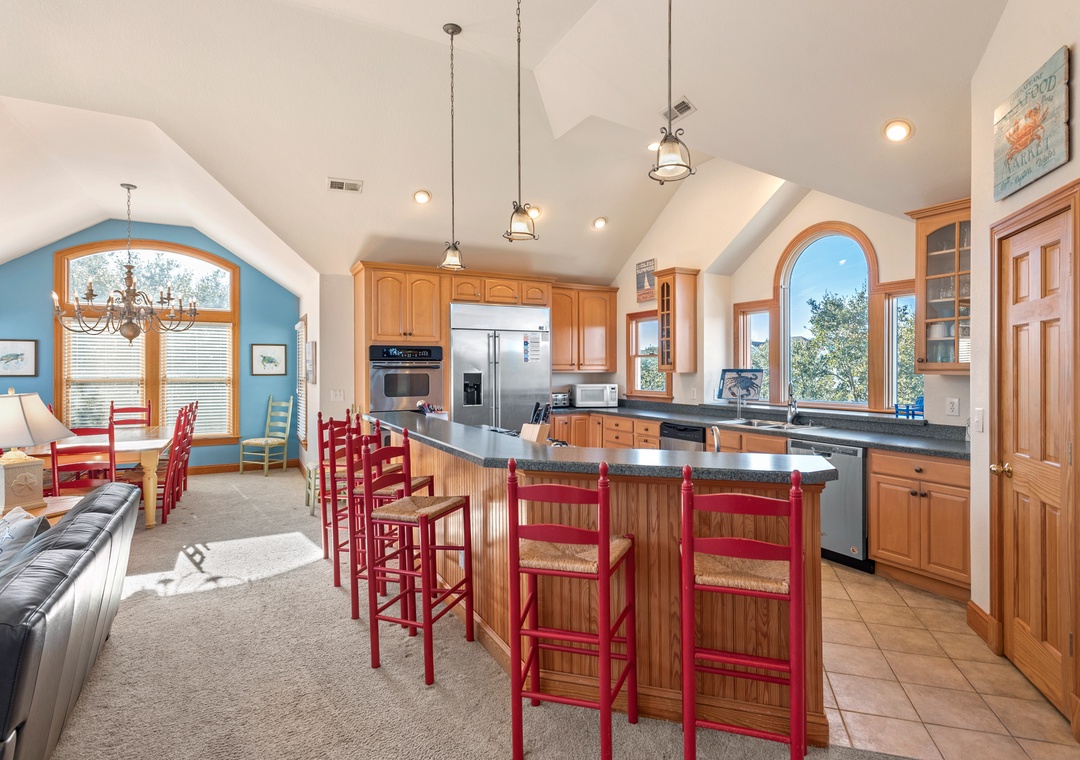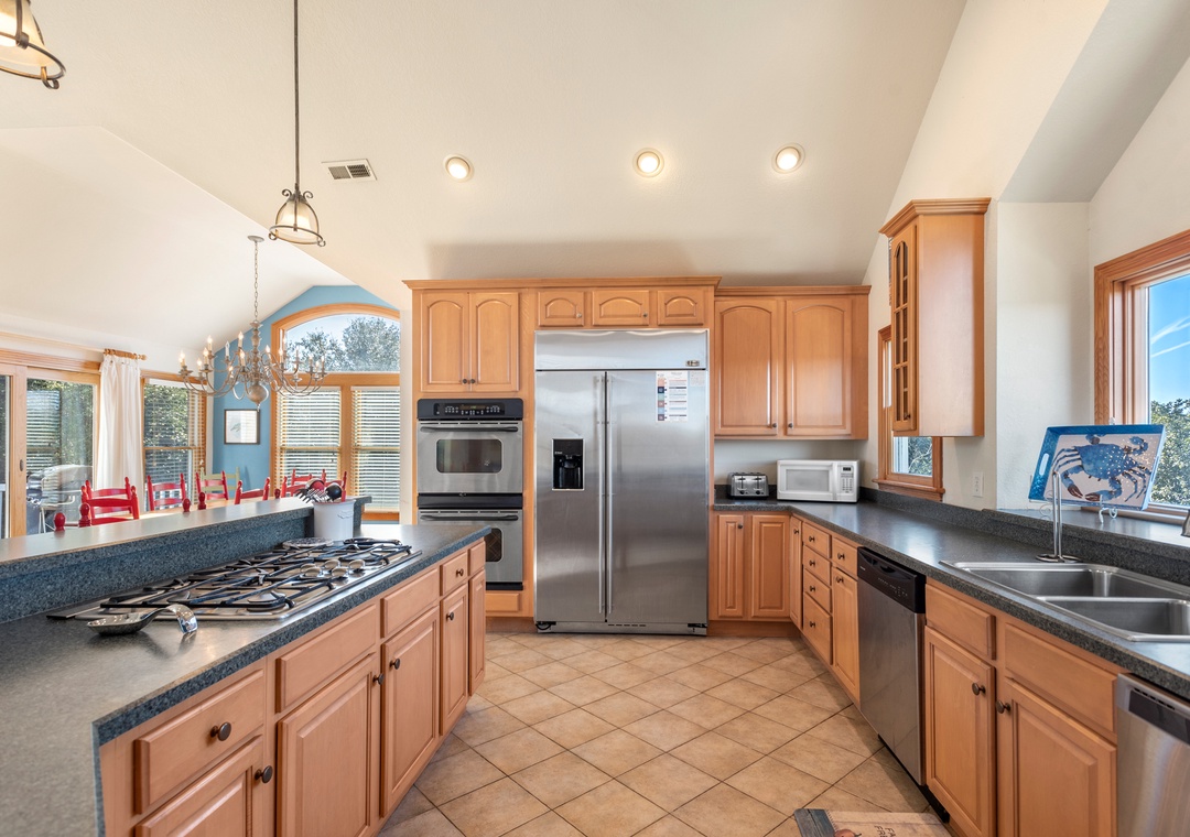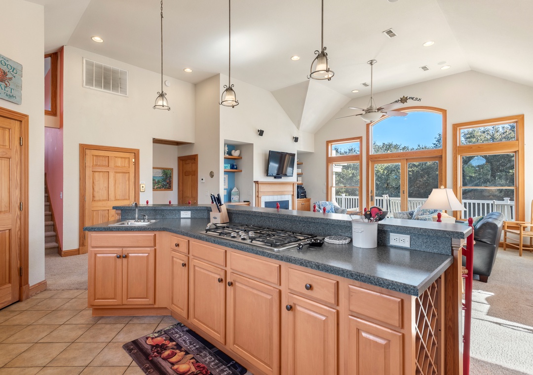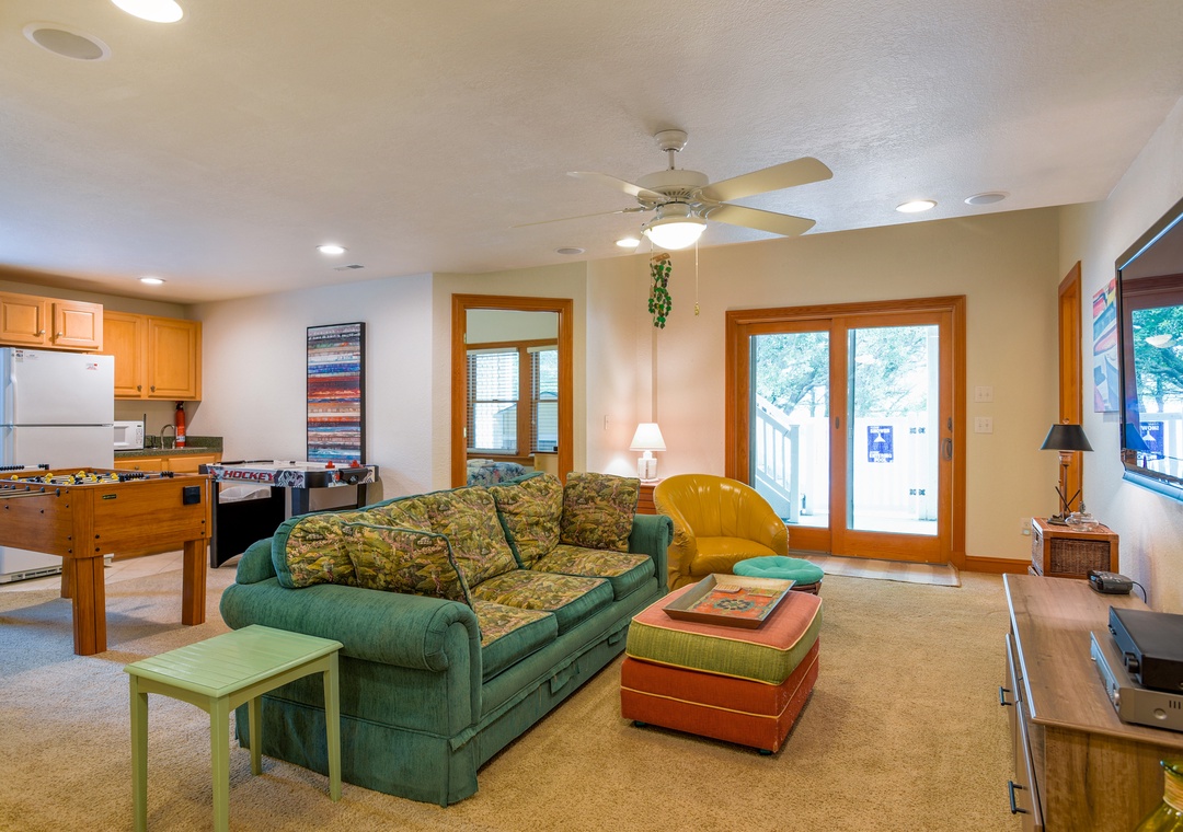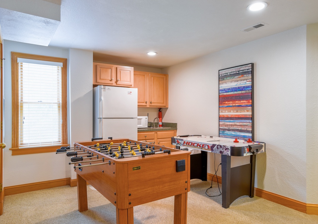 Jetted tub, 3 Master suites, poolside speakers, WIFI, the gas fireplace, 2 refrigerators, 2 dishwashers. Rec Room with wet bar, foosball, pack-n-play, high chair, grill, enclosed outside shower, and garage.