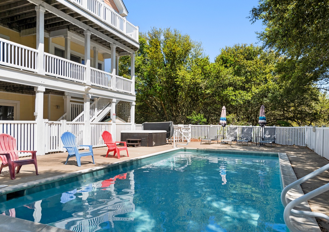 This elegant, well-appointed home in The Currituck Club offers the ultimate in peace and relaxation. Unwind in the heated private pool, star gaze in the hot tub, play a round of golf, just relax on the deck with an ice cold drink and a good book…Come coast awhile!