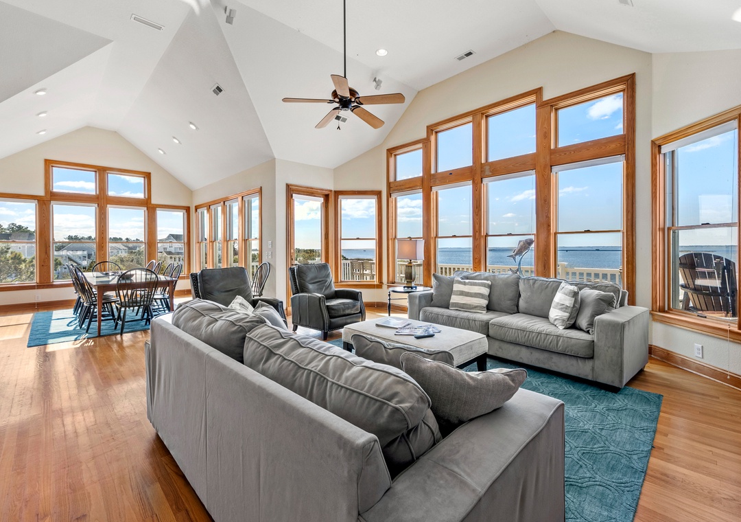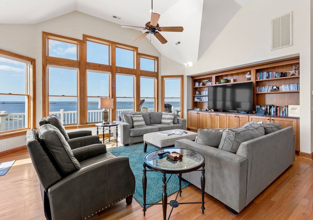 For nature lovers just look out the back windows or stand on the decks to see the nesting ospreys who come back year after year, bald eagles, a family of otters, purple martins, house finches, bluebirds, and nesting purple swallows. The sound views and nature scenes are simply breathtaking. If you want to go to the beach, the house includes a membership to the exclusive Pine Island Beach and pool Club or you can walk or take the trolley to the Currituck Club beach.