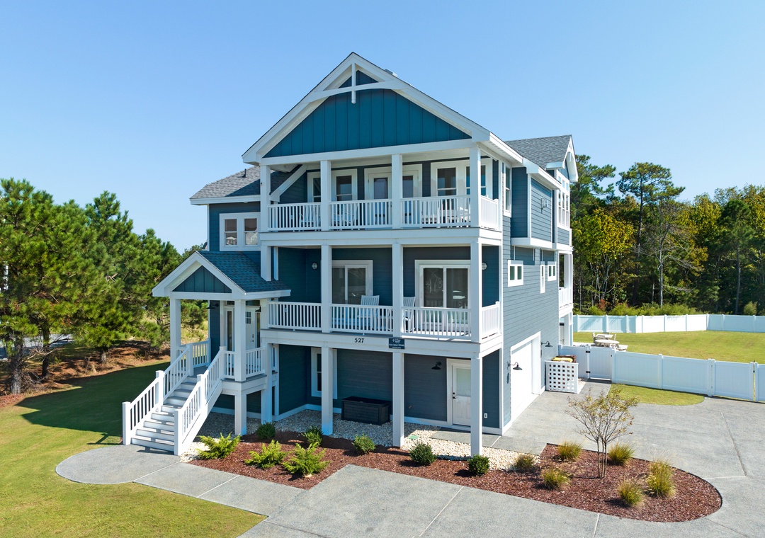 Shell's By The Seashore is a brand new, custom-built home situated on the quiet and secluded Historic Loop in the Currituck Club. This spacious, six bedroom retreat will check off everything on your vacation home wish list. Shell's By The Sea Shore offers guests three levels and over 4,000 square feet of indoor living, plus an expansive backyard with a heated saltwater pool. There's no shortage of gathering space with a large, open-concept great room plus additional common areas on all three floors. Shoot pool, play shuffleboard or watch movies in the rec room downstairs. Use the full-size refrigerator and freestanding icemaker for convenient drinks and snacks by the pool. Ideal for extended families and larger groups, four of the six bedrooms are master suites that include private baths with double vanities and tiled walk-in showers. Upstairs, the great room features 11' ceilings, a gas fireplace (off-season only) and French doors that lead to a large covered porch. The chef in the family can prepare meals while socializing with family and friends gathered around the large kitchen island. In the mornings, grab a cup of coffee and get your daily dose of Vitamin D in the sun room or deck overlooking the pool area below.