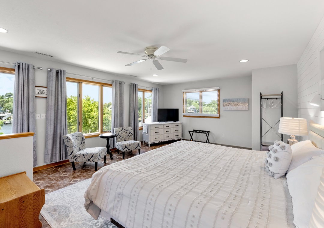 Ask your family and friends to Come Sail Away in the hidden gem of Colington Harbour. This lovely home is situated right on a deepwater canal with a private dock, providing easy access for guests who wish to bring their boats. It's also ideal for launching kayaks and paddleboards, as well as fishing or crabbing right behind the house. Colington Harbour is a family-friendly, gated community without any of the busy beach traffic. You'll have access to a variety of neighborhood amenities that guests of all ages will enjoy, including an outdoor pool, soundside beach and playground.