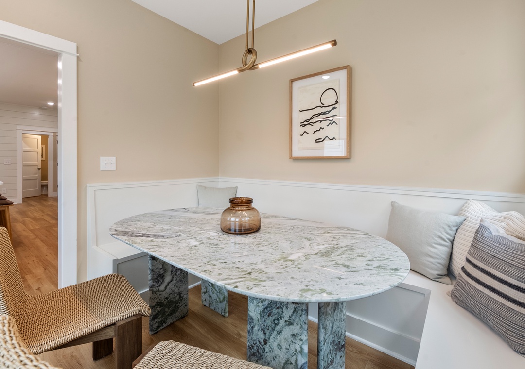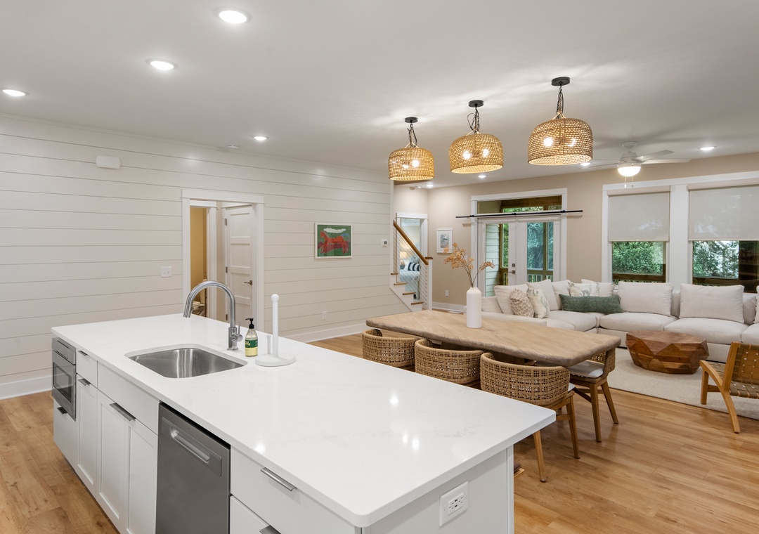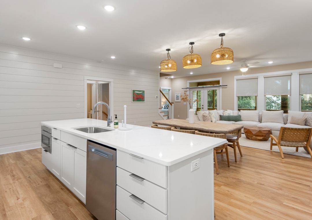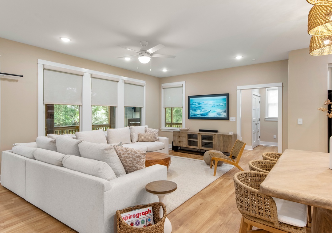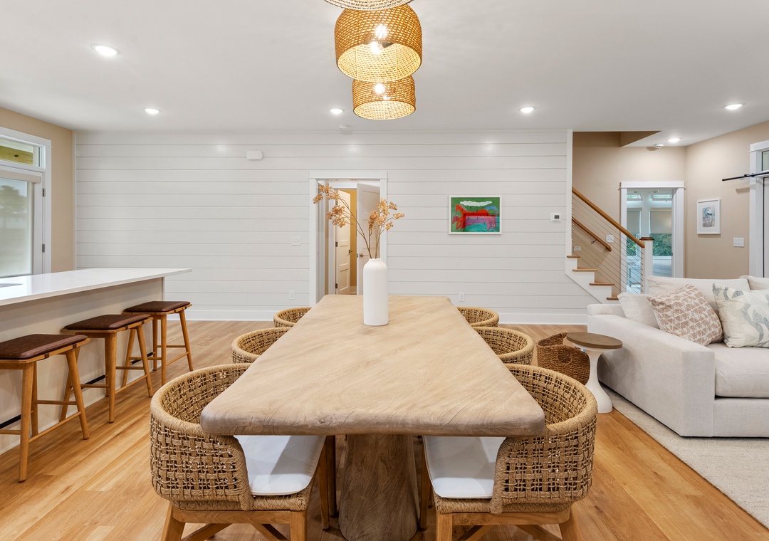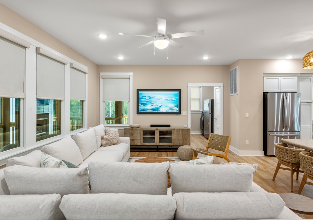When it's time to relax and spend quality time together, gather the family in the beautifully furnished open-concept great room. The chef in your group will be delighted with the spacious kitchen that boasts top-of-the-line stainless steel appliances and an expansive island with bar seating. Sit down and enjoy meals together at the stunning dining table that's truly a work of art, or in the cozy breakfast nook with banquette seating. You can even dine al fresco on the screened porch, a fabulous outdoor space that also includes lounge furniture, a fireplace and even a TV. Back inside, the laundry room provides a second full-size fridge for storing extra groceries or the catch of the day.