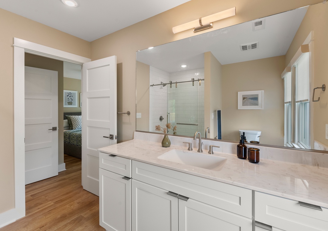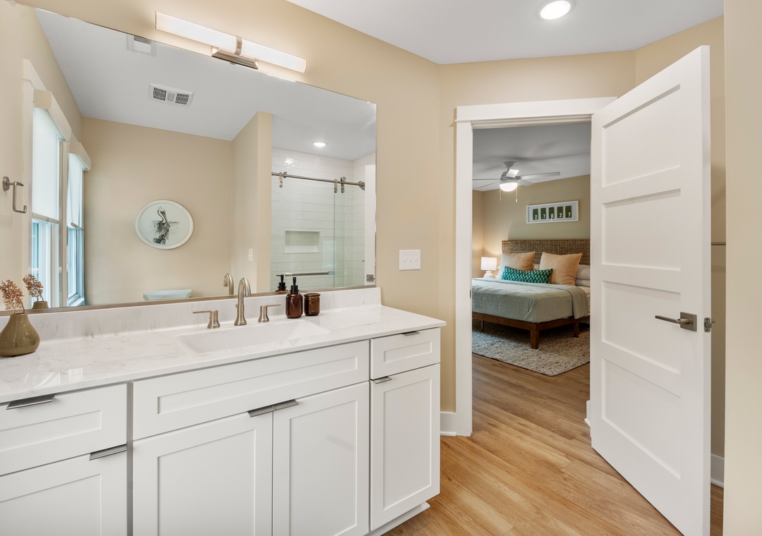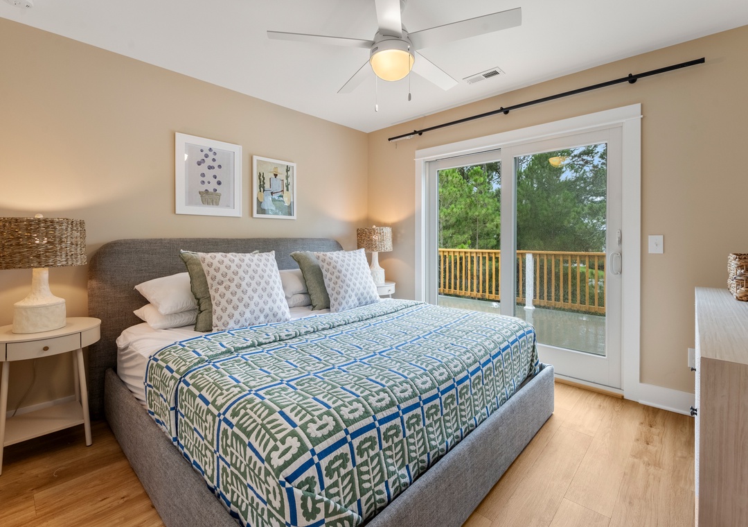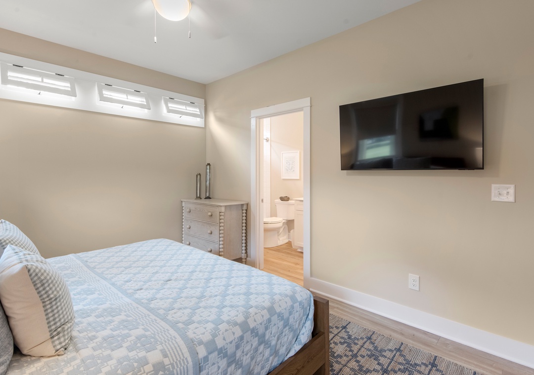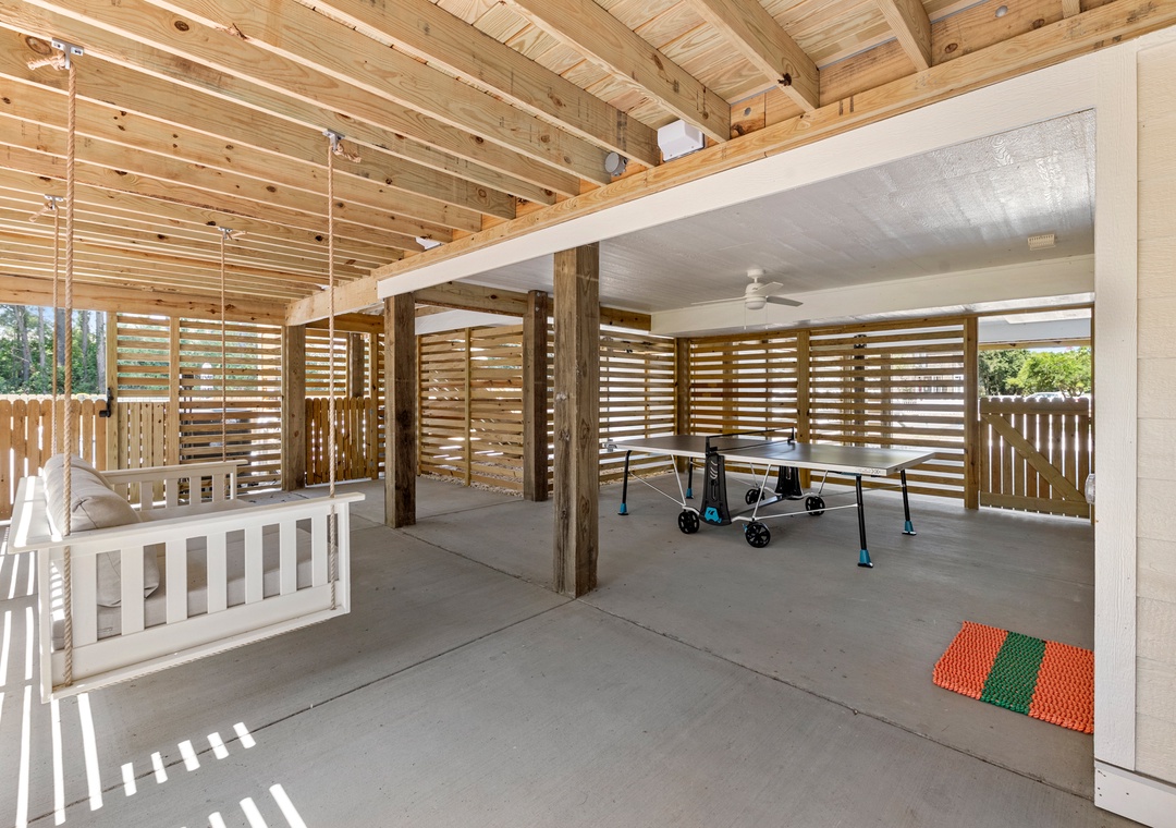 Gorgeous hardwood floors flow throughout this entire dog-friendly home, including the bedrooms - ideal for sandy feet and paws returning from the beach. At the end of the night, retreat to the primary suite that features a king bed and private bath with dual vanities and luxurious walk-in shower. A second king ensuite is also located on the mid-level. Upstairs, you'll find three more bedrooms including a third king room with access to a private sun deck overlooking the pool. Take advantage of the top-level wet bar for convenient drinks, snacks and morning coffee. All five bedrooms feature ensuite baths for plenty of privacy. Downstairs, the ground level has been transformed into a covered outdoor recreation space complete with hot tub and ping pong table.
