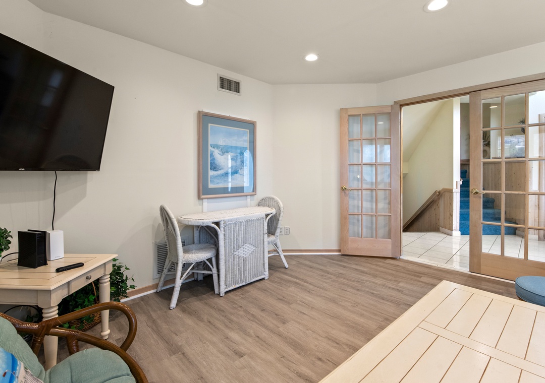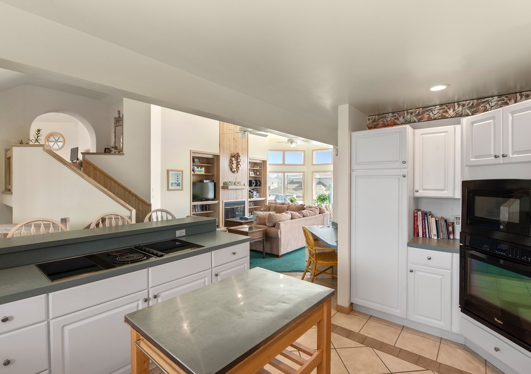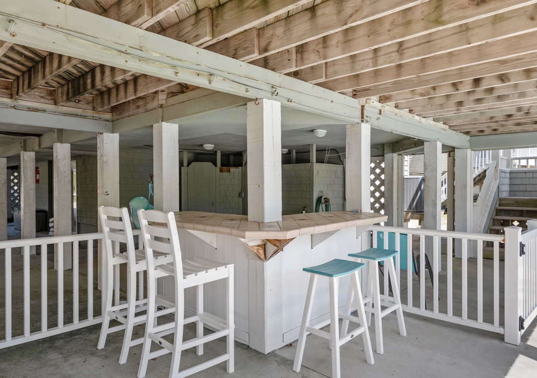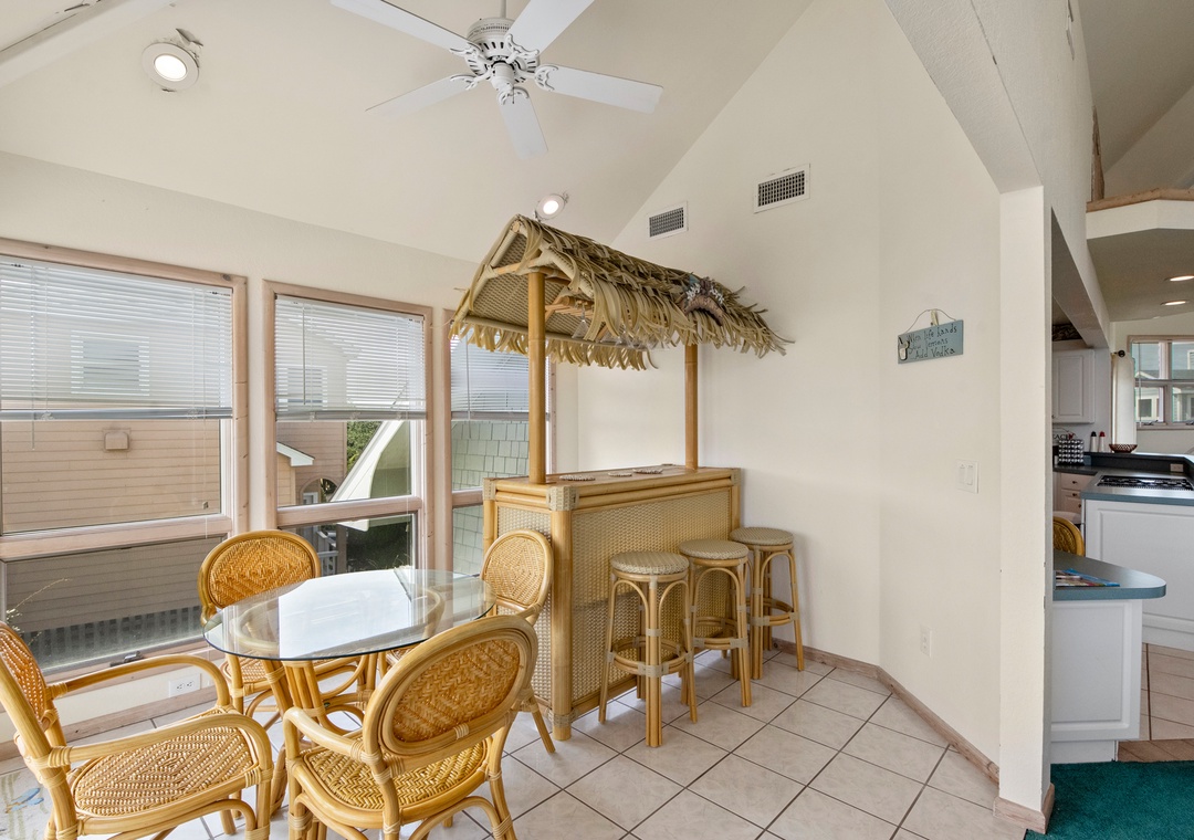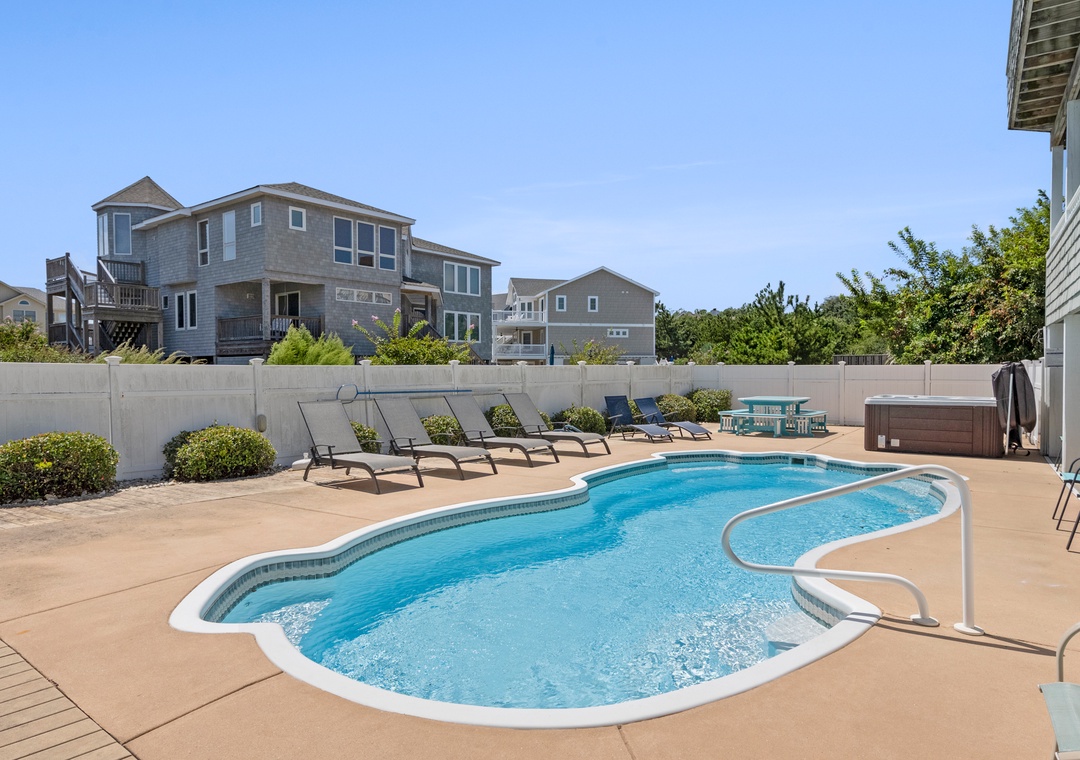 The private pool at Payson Place is 14'x32' and there is also a hot tub. The sunroom on the third floor offers a tiki bar and lighthouse views. Climb up another flight and you have a Ship's Watch with ocean views, a bumper pool table, and a wet bar with a mini-fridge.