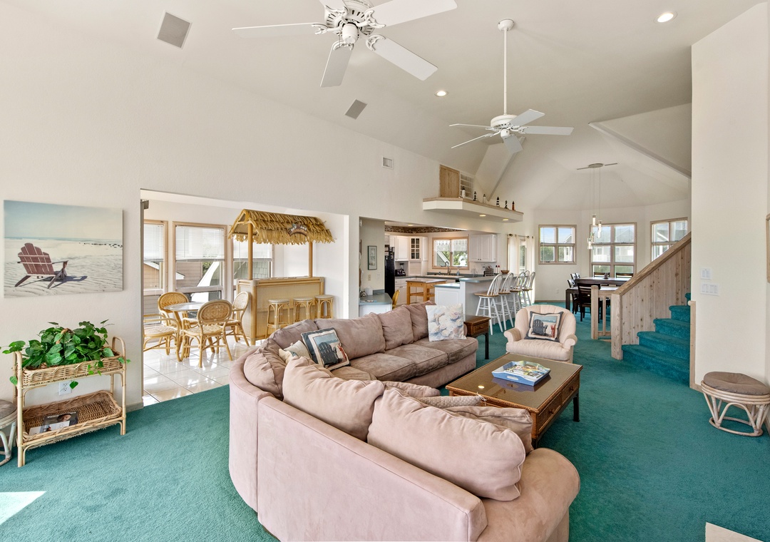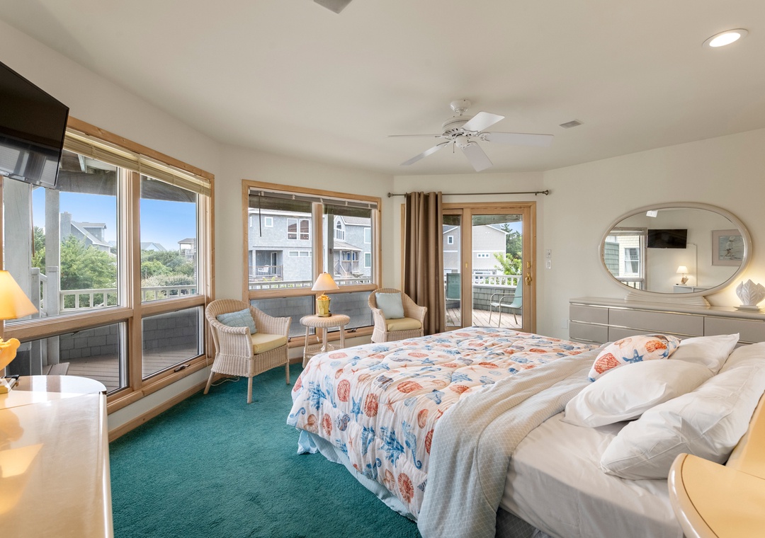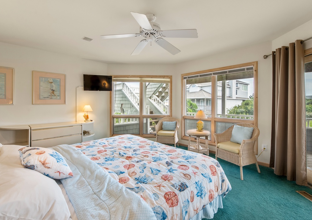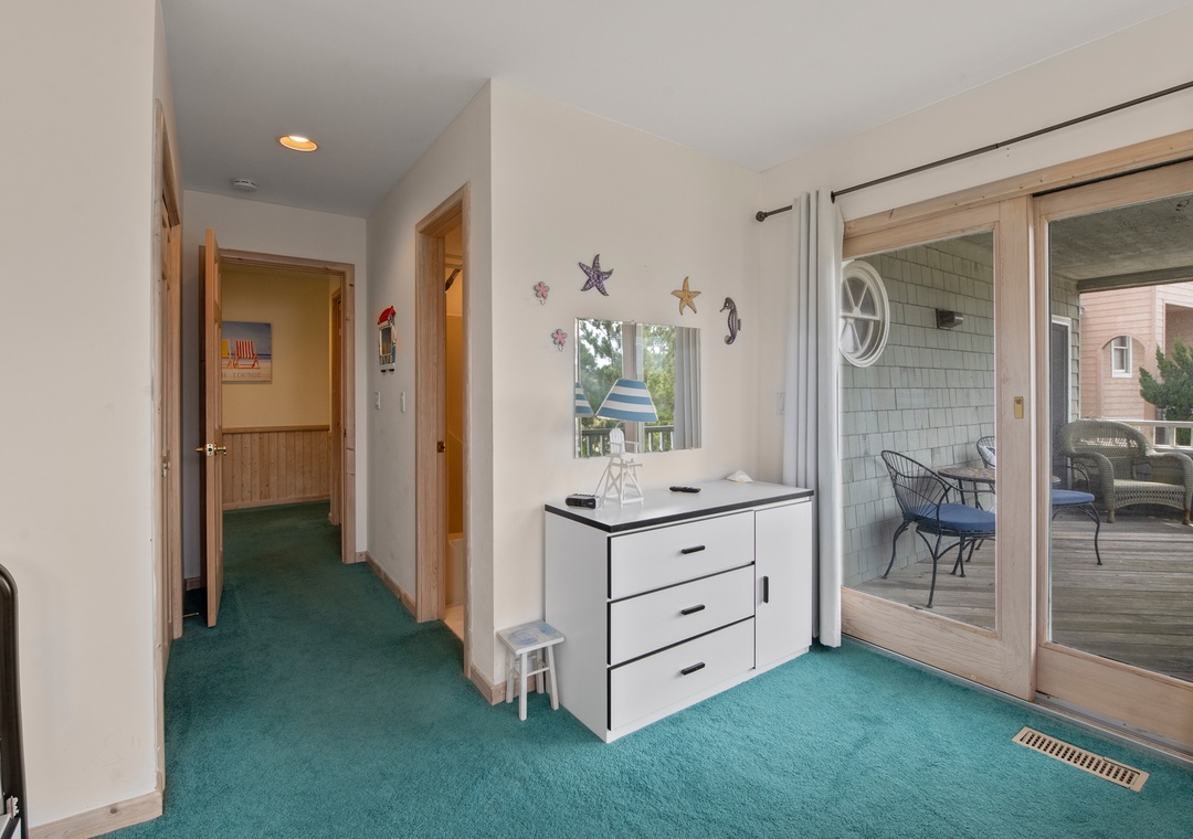 Inside this Outer Banks vacation rental you will find five bedrooms and four full baths, one-half bath. Two of the bedrooms have a private bath attached and a whirlpool tub.