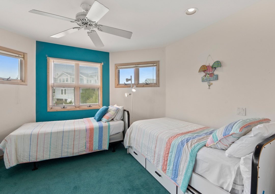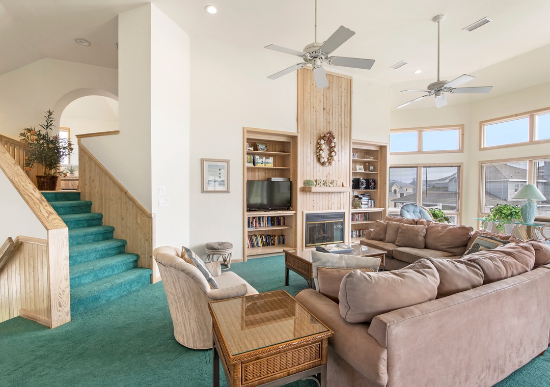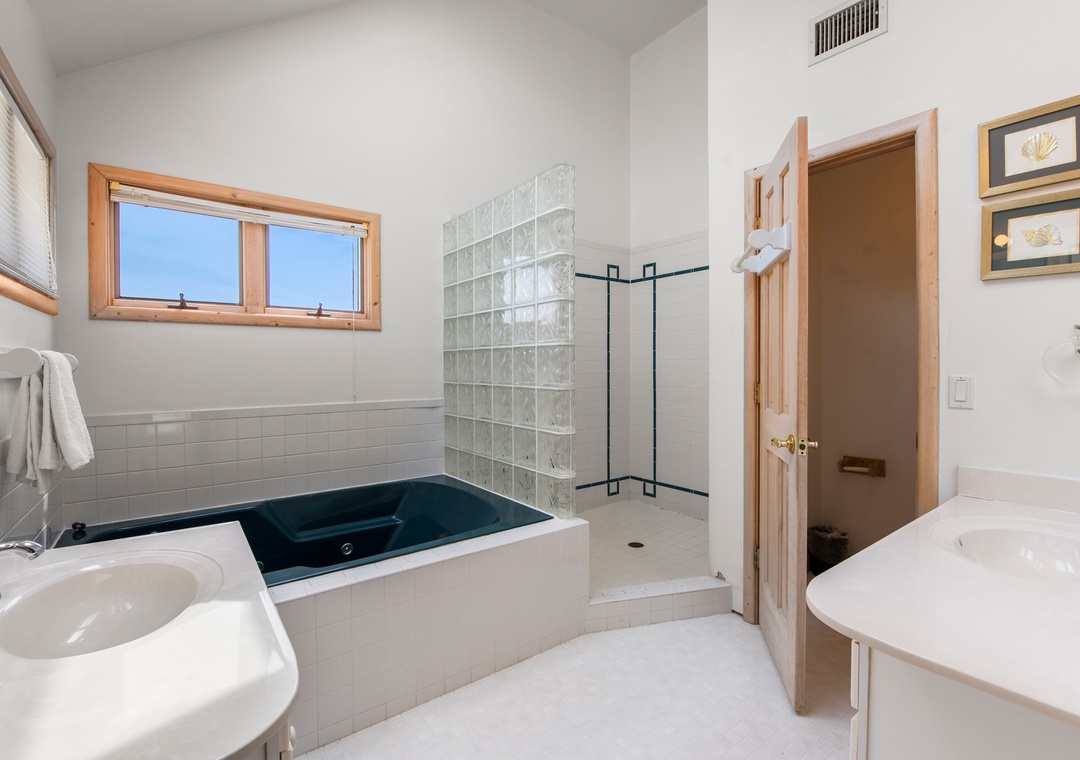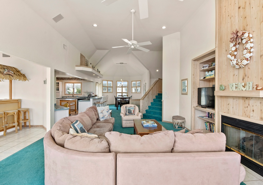 Inside this Outer Banks vacation rental you will find five bedrooms and four full baths, one-half bath. Two of the bedrooms have a private bath attached and a whirlpool tub.
