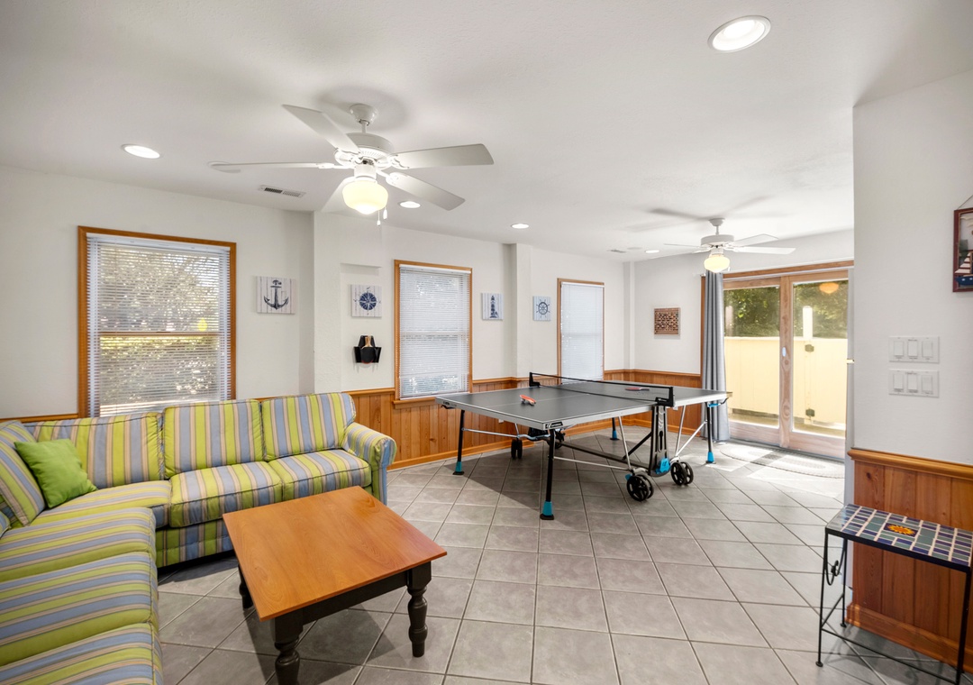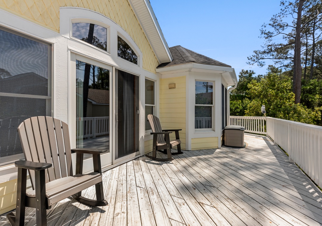Let Irish Tides sweep you away on a fantastic vacation. Sip coffee on one of the many decks. Soak in the sun after a short walk or trolley ride to the beach. After enjoying the ocean, lounge in the large private pool or relax in the hot tub. Finish the day with a sunset walk on the Sound or a game of ping pong before unwinding in a hammock.